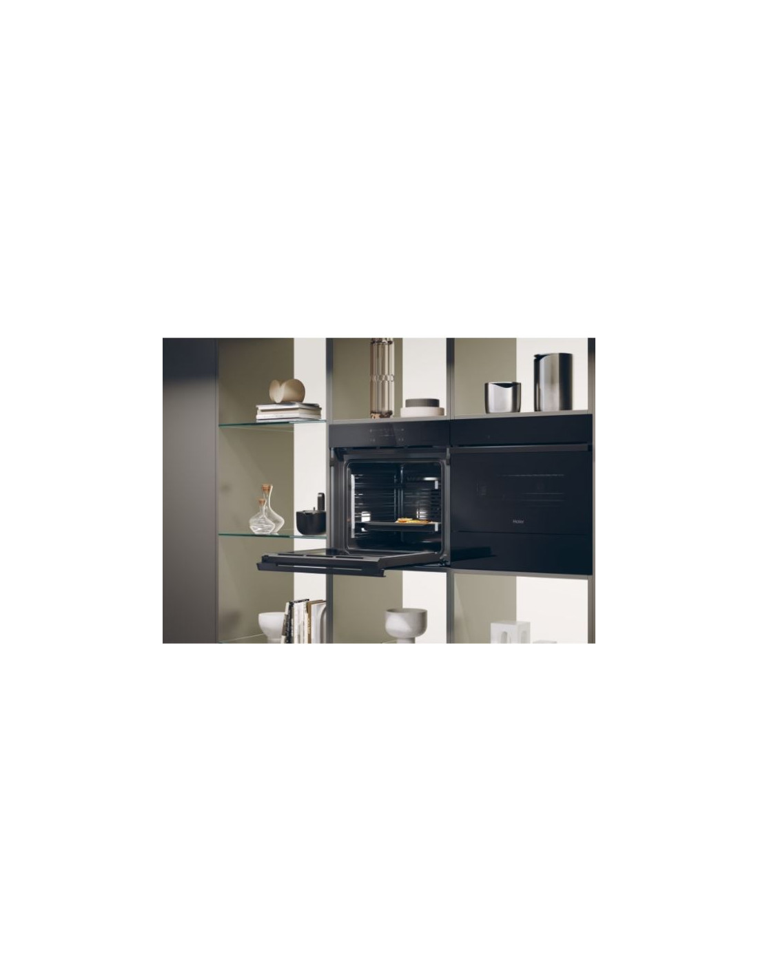 Haier H6 ID68C5SYTB. Tamaño del horno: Grande, Tipo de horno: Horno eléctrico, Total capacidad interior, horno (s): 78 L. Tipo de instalación: Integrado, Color del producto: Negro, Tipo de control: Tocar. Tipo de temporizador: Digital, Aplicaciones de control compatibles: hOn. Clase de eficiencia de energía: A++, Consumo de energía (convencional): 0,99 kWh, Consumo de energía (convección forzada): 0,54 kWh. Ancho de compartimiento de instalación: 56 cm, Profundidad del compartimiento de instalación: 56 cm, Altura del compartimiento de instalación: 59 cm