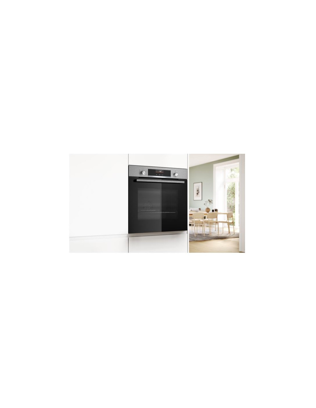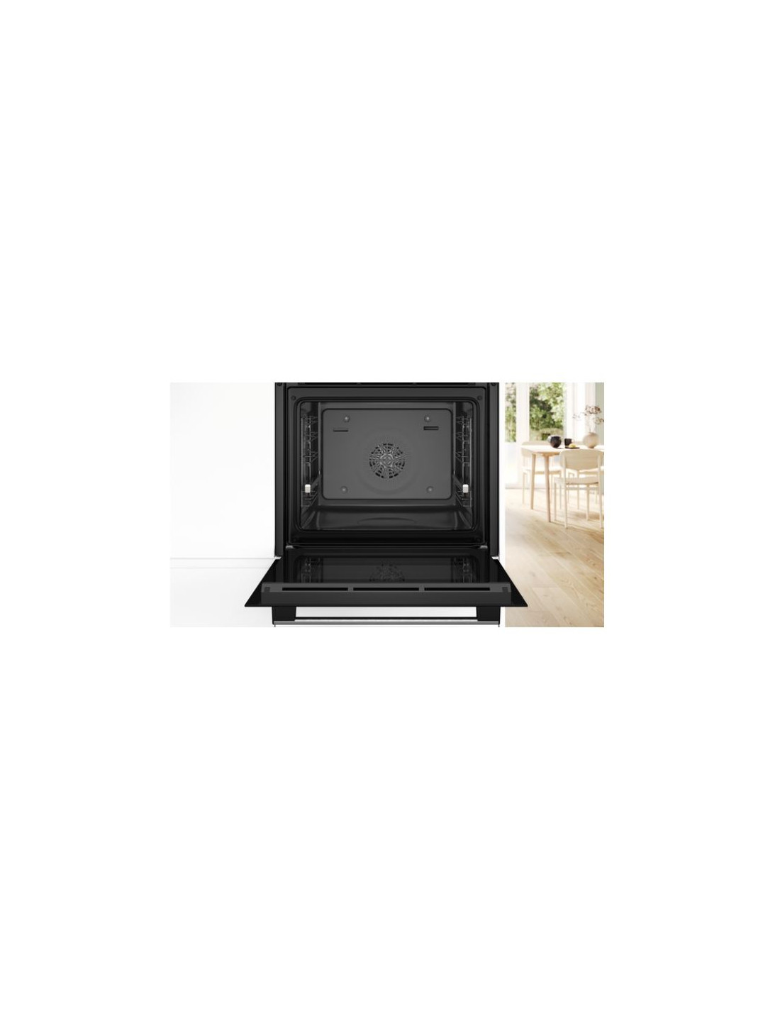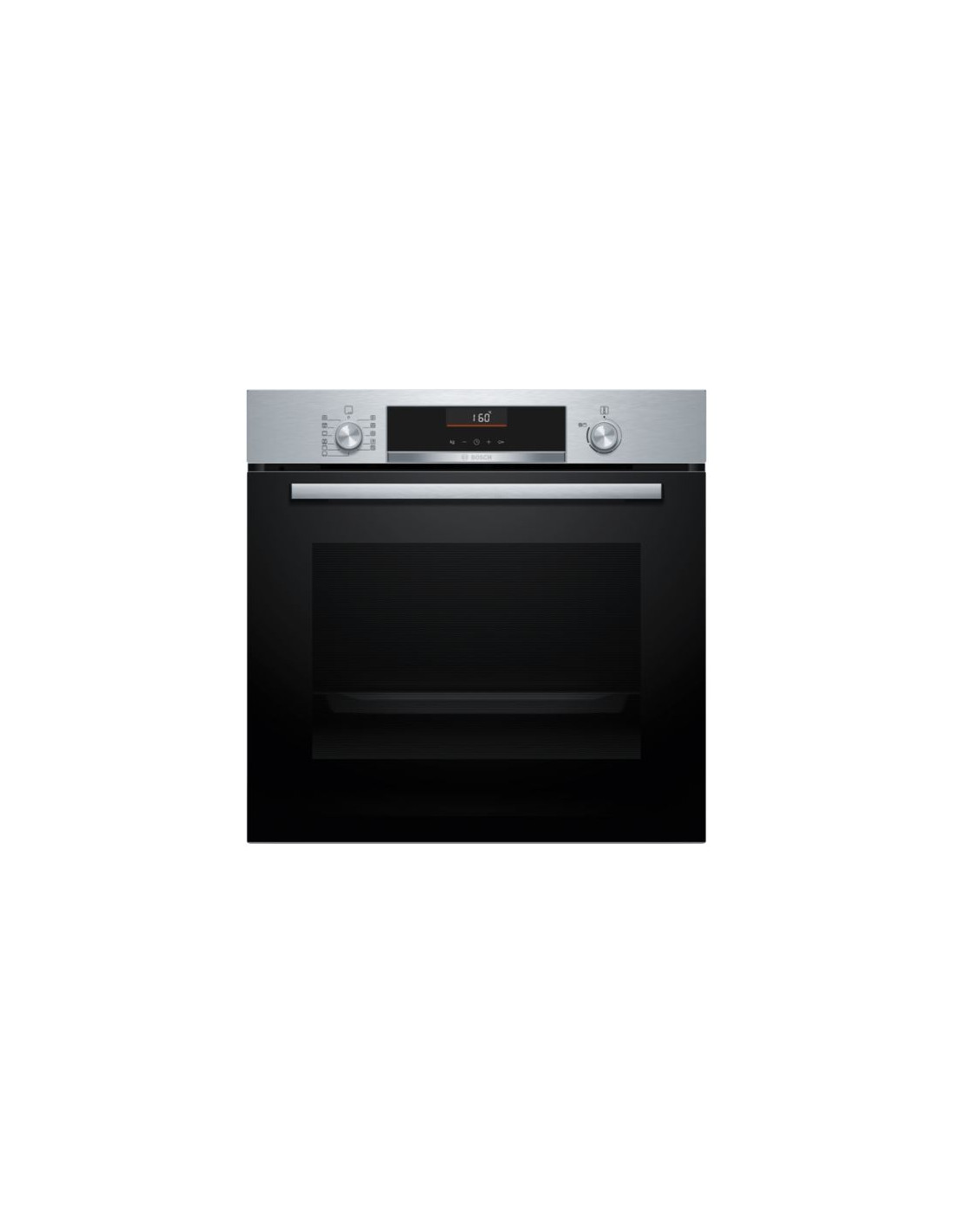 Horno MF indep. Bosch HBG536ES4, Multifunción, "A+, Integrable, 60cm., 71 l., 8 F., Asistente de limpieza con agua, Ap. Abatible, Cristal negro/inox, AirFry, Mandos ocultables con display, Gourmet 10 recetas, Railes 1 nivel, Temperatura en Display, SoftMove