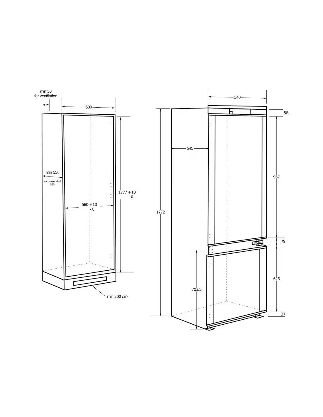 Combi NF INT Haier HBW5518D, integrable, no frost, 177x54cm, Clasificacion energetica "D, Humidity control system