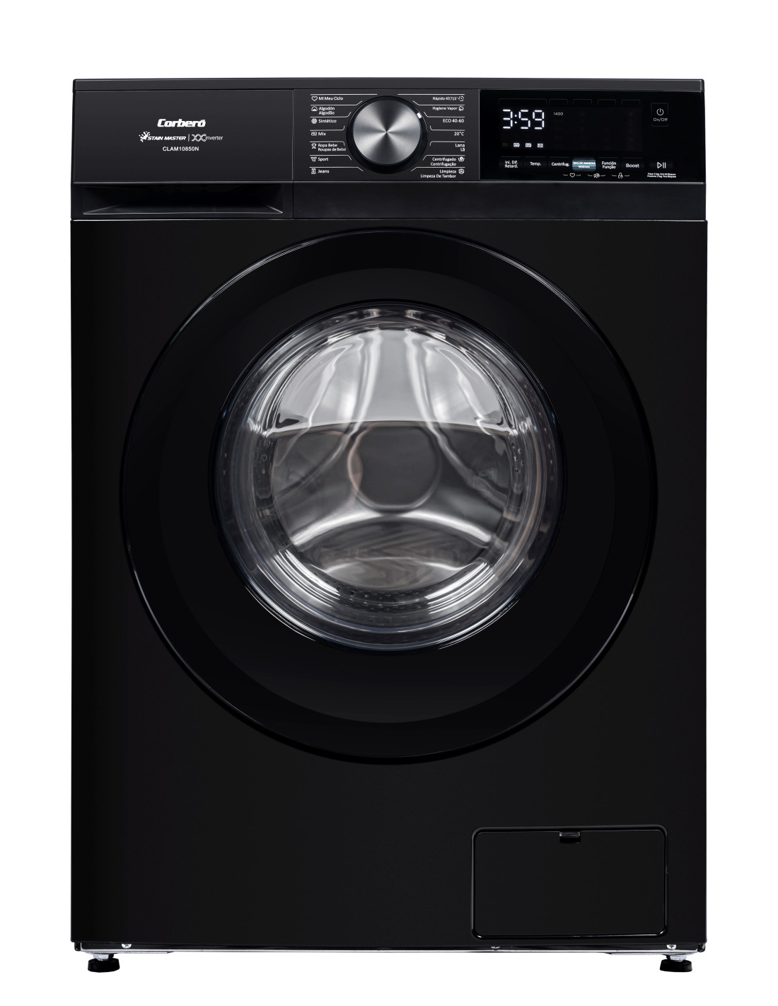 Lavadora Corbero CLAM10850N, 10kg, 1400rpm, Motor Inverter, Color Negro, 14 Programas, Vapor, Control Touch, Inicio diferido, Lavado Rápido de 15/45 Min., Enjuague Extra, Pre-Lavado, Puerta XXL, Eficiencia Energética "A -10%