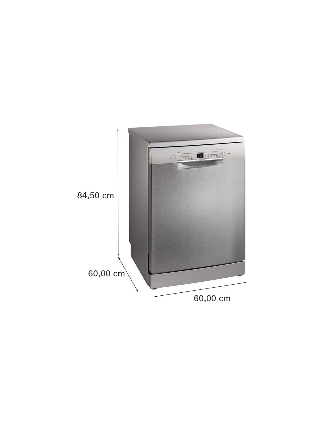 Bosch Serie 2 SMS2HTI06E. Tipo de instalación: Independiente, Talla del producto: Tamaño completo (60 cm), Color de la puerta: Gris, Metálico. Número de cubiertos: 13 cubiertos, Clase de emisión de ruido: C, Nivel de ruido: 46 dB. Ajuste de patas: 2 cm, Aplicaciones de control compatibles: Bosch Home Connect. Clase de eficiencia de energía: C, Consumo de agua por ciclo de lavado: 9 L, Consumo de energía por 100 ciclos: 74 kWh. Ancho: 600 mm, Profundidad: 600 mm, Altura: 845 mm