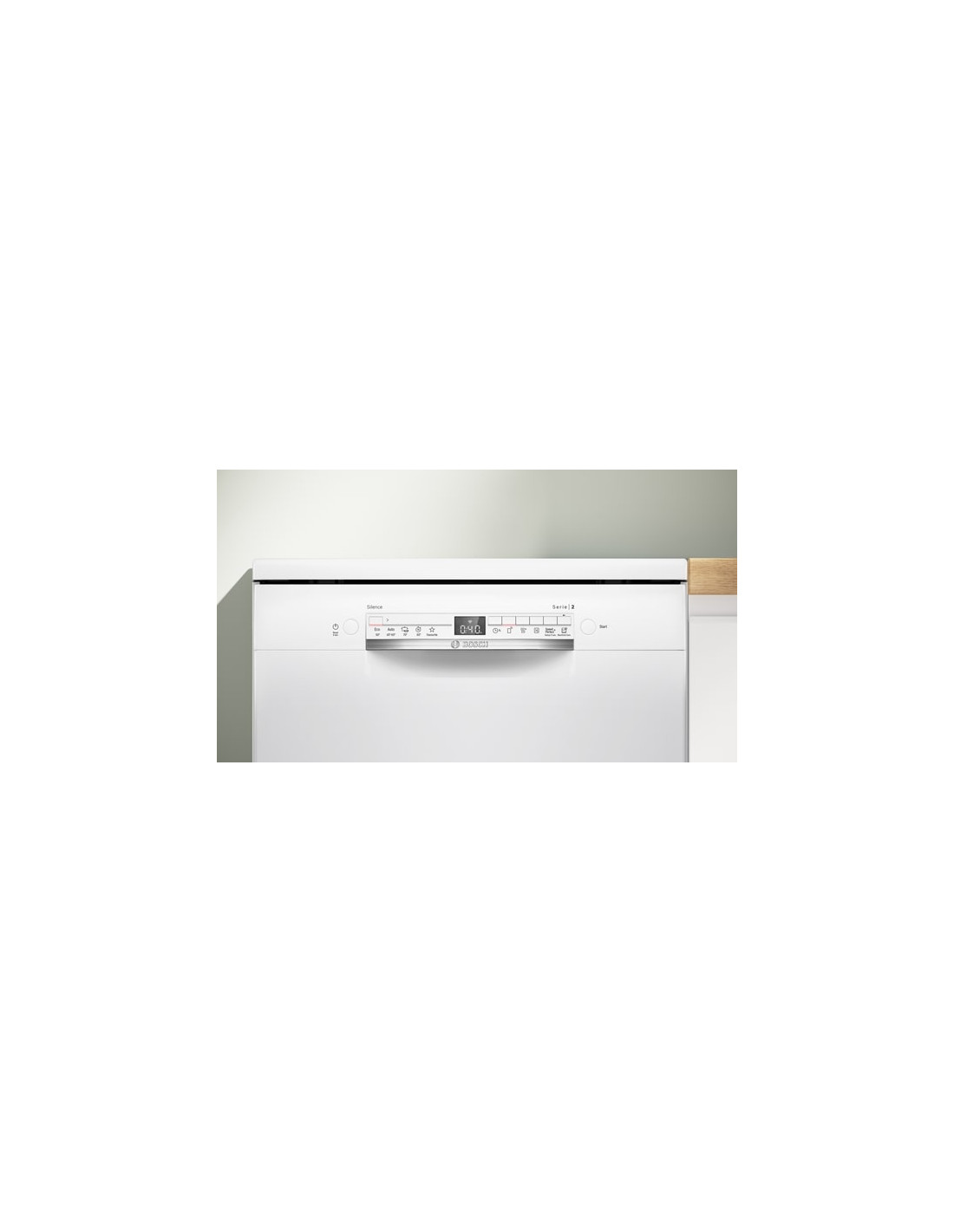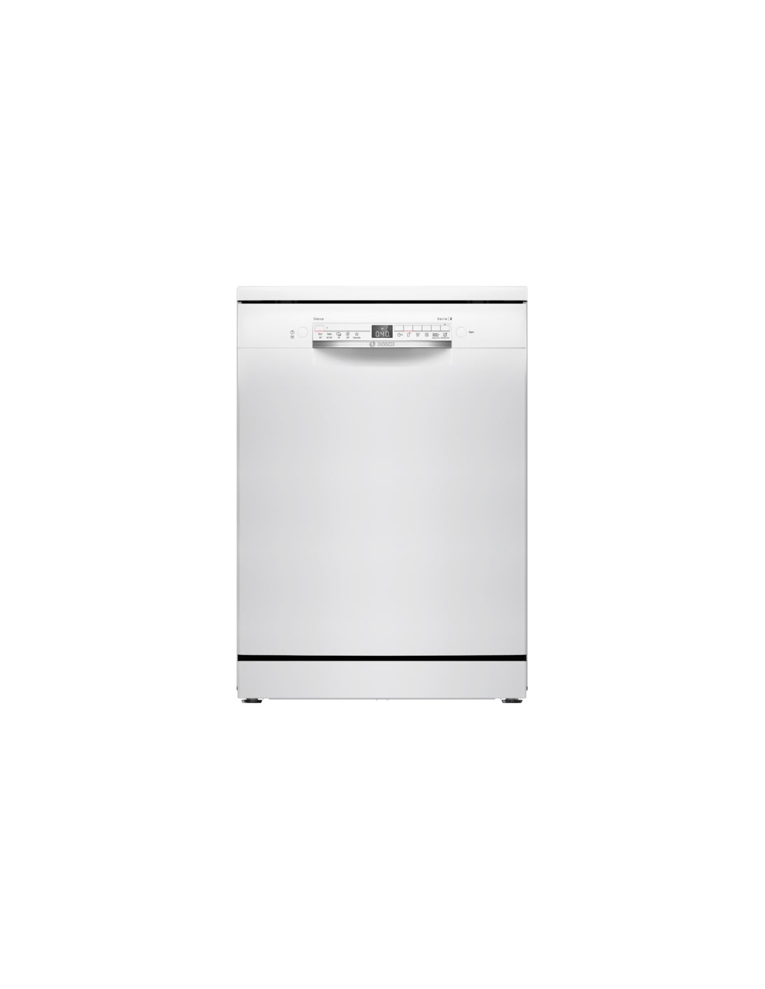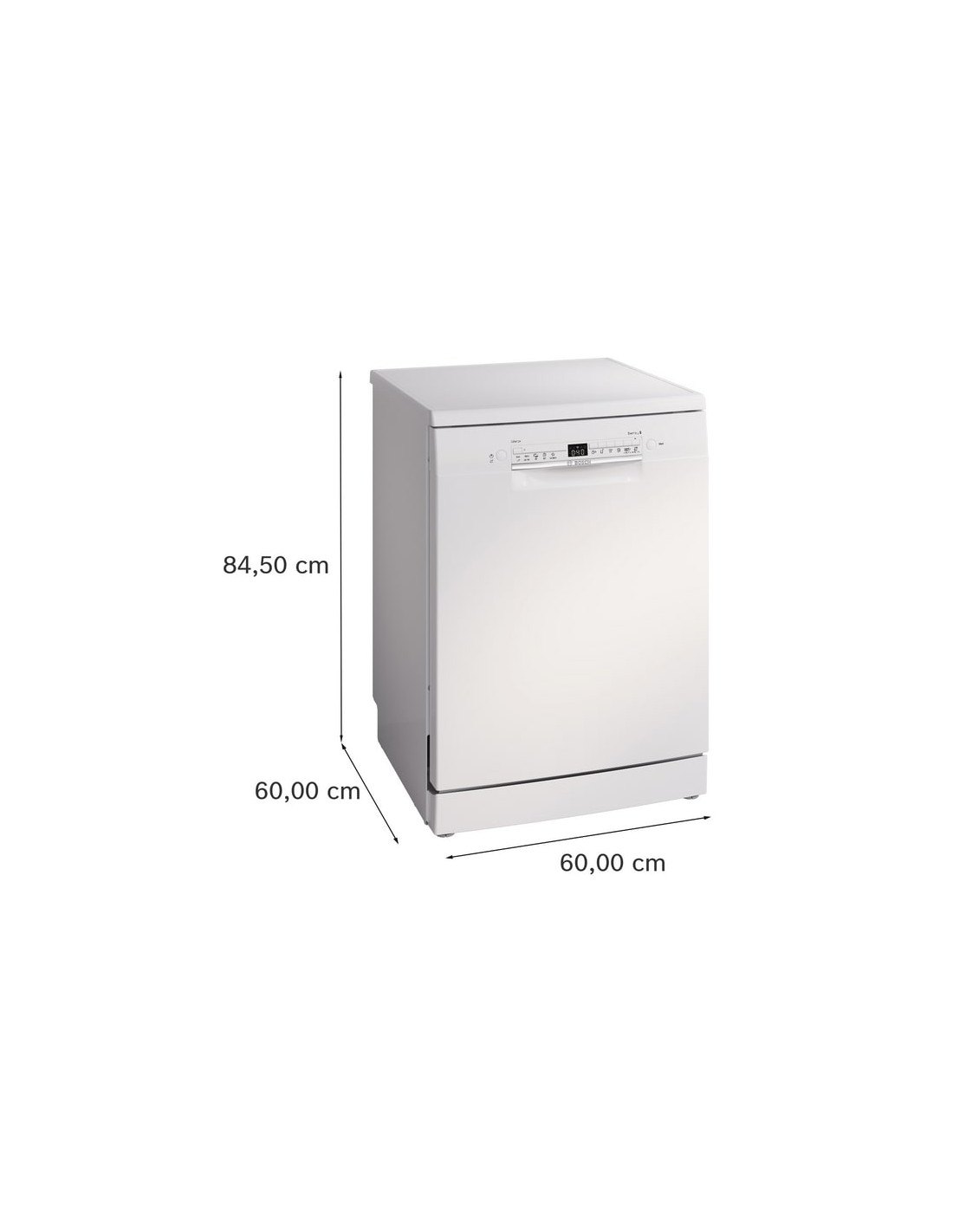 Bosch Serie 2 SMS2HTW06E. Tipo de instalación: Independiente, Talla del producto: Tamaño completo (60 cm), Color de la puerta: Blanco. Número de cubiertos: 13 cubiertos, Clase de emisión de ruido: C, Nivel de ruido: 46 dB. Ajuste de patas: 2 cm, Aplicaciones de control compatibles: Home Connect. Clase de eficiencia de energía: C, Consumo de agua por ciclo de lavado: 9 L, Consumo de energía por 100 ciclos: 74 kWh. Ancho: 600 mm, Profundidad: 600 mm, Altura: 845 mm