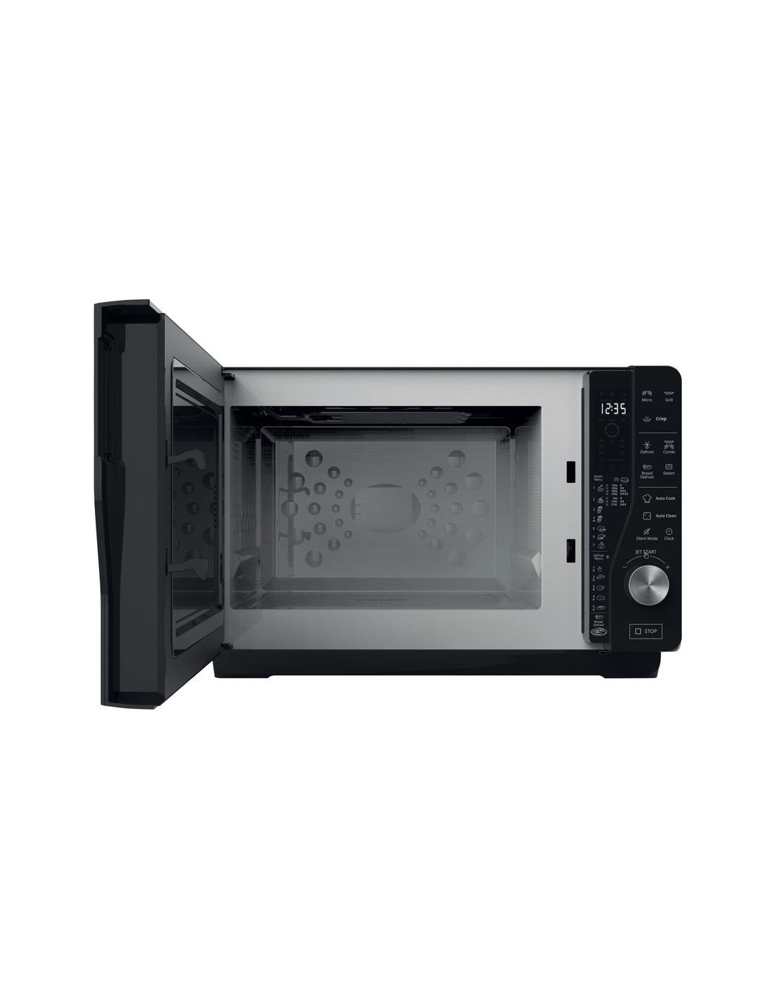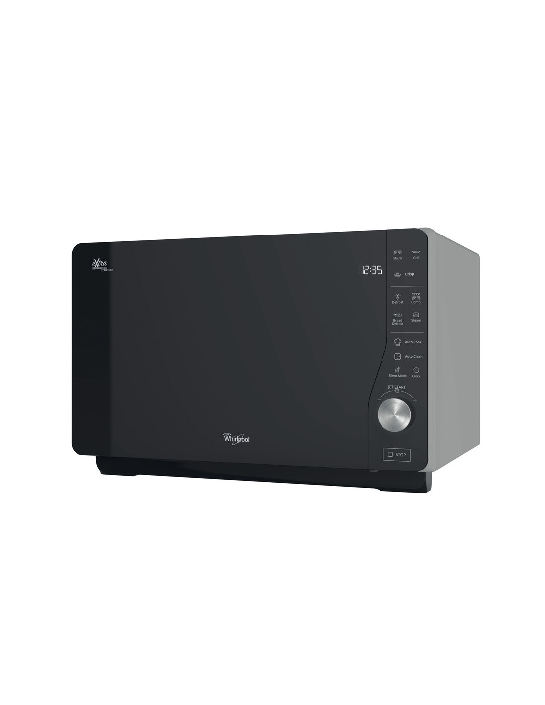 Microondas Whirlpool MWF427SL, 25L, EXTRA SPACE (Sin Plato), MWO/GRILL - 800/1000W, Autocook Negro Microondas de libre instalación con Grill, Crisp, Display: LCD, 7 niveles de potencia, Sistema de distribuición de olas 2D, Apertura Lateral, Grill (Resistencia), Jet Start, Bread Defrost, Vapor, Temporizador, Bloqueo de seguridad, Potencia Total (W): 2250, Potencia Grill (W): 1000, Sin plato rotativo, SILVER (LATERAL) NEGRO (FRONTAL), Cavidad Pintada, 320 x 490 x 426 mm