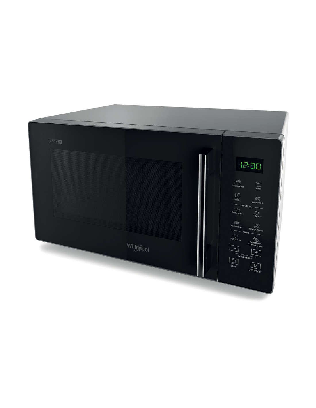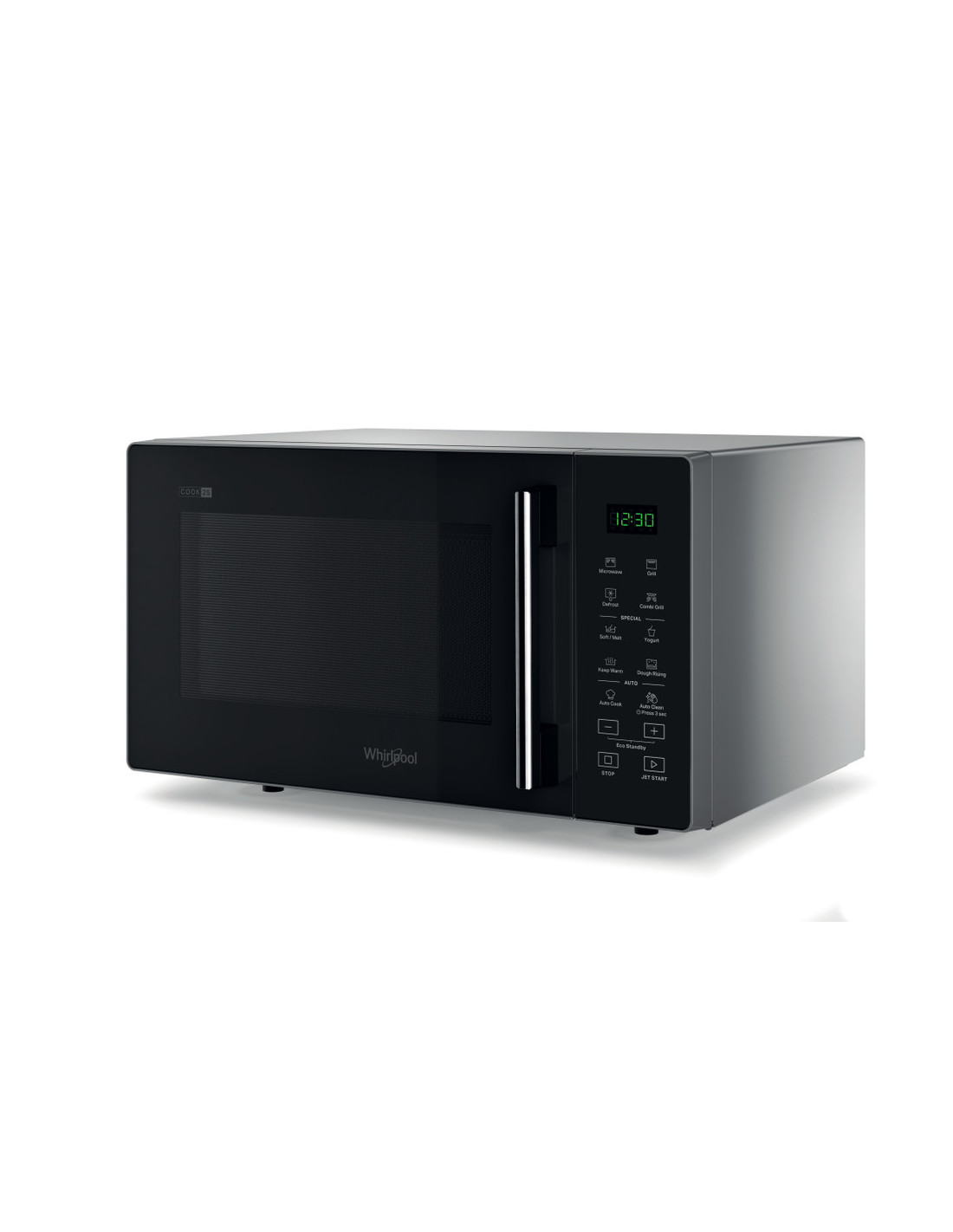 Whirlpool Cook25 MWP 253 SB. Tipo de instalación: Encimera, Tipo de producto: Microondas con grill, Capacidad interior: 25 L, Potencia del microondas: 900 W, Pantalla incorporada, Tipo de visualizador: LED, Tipo de control: Tocar, Color del producto: Negro, Plata