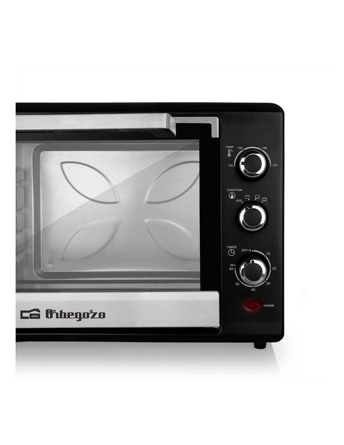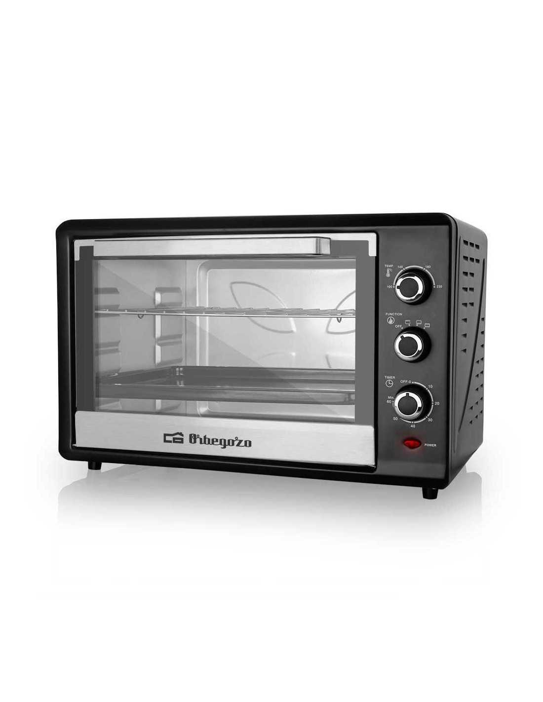 Orbegozo HO 453. Tamaño del horno: Medio, Tipo de horno: Horno eléctrico, Total capacidad interior, horno (s): 45 L. Color del producto: Negro, Acero inoxidable, Tipo de control: Giratorio, Control de posición: Frente. Tipo de temporizador: Digital, La duración del temporizador: 60 min, Modos del temporizador: Tiempo de cocción, Fin de cocción. Voltaje de entrada AC: 230 V, Frecuencia de entrada AC: 50 Hz. Ancho: 545 mm, Profundidad: 365 mm, Altura: 405 mm