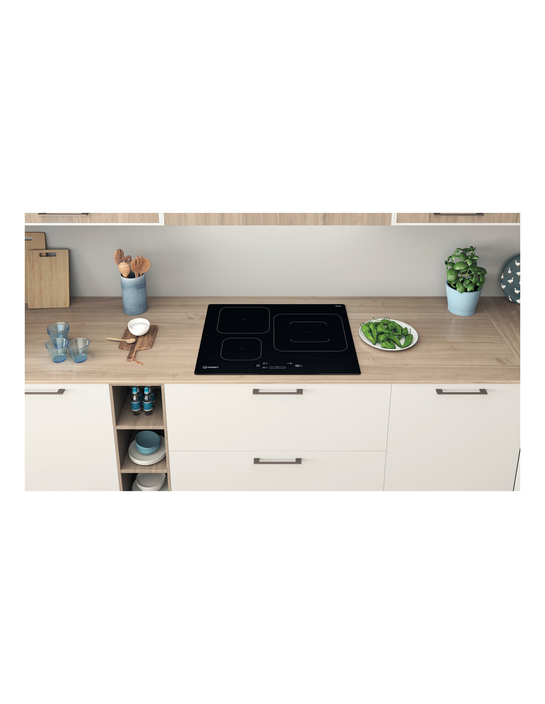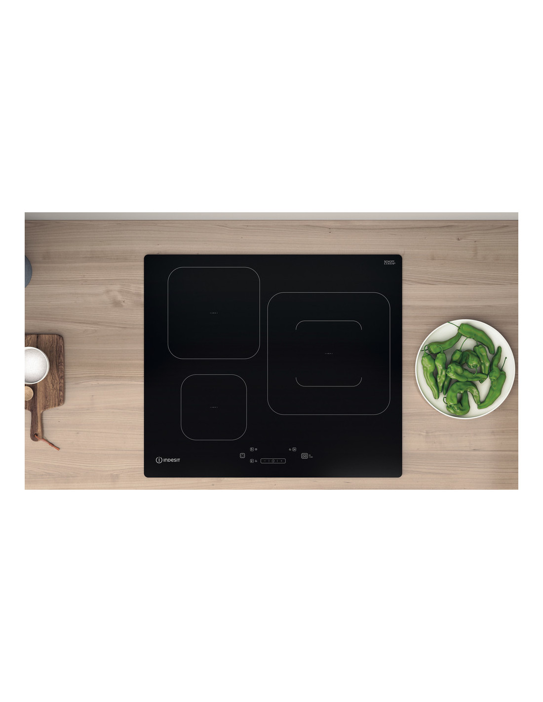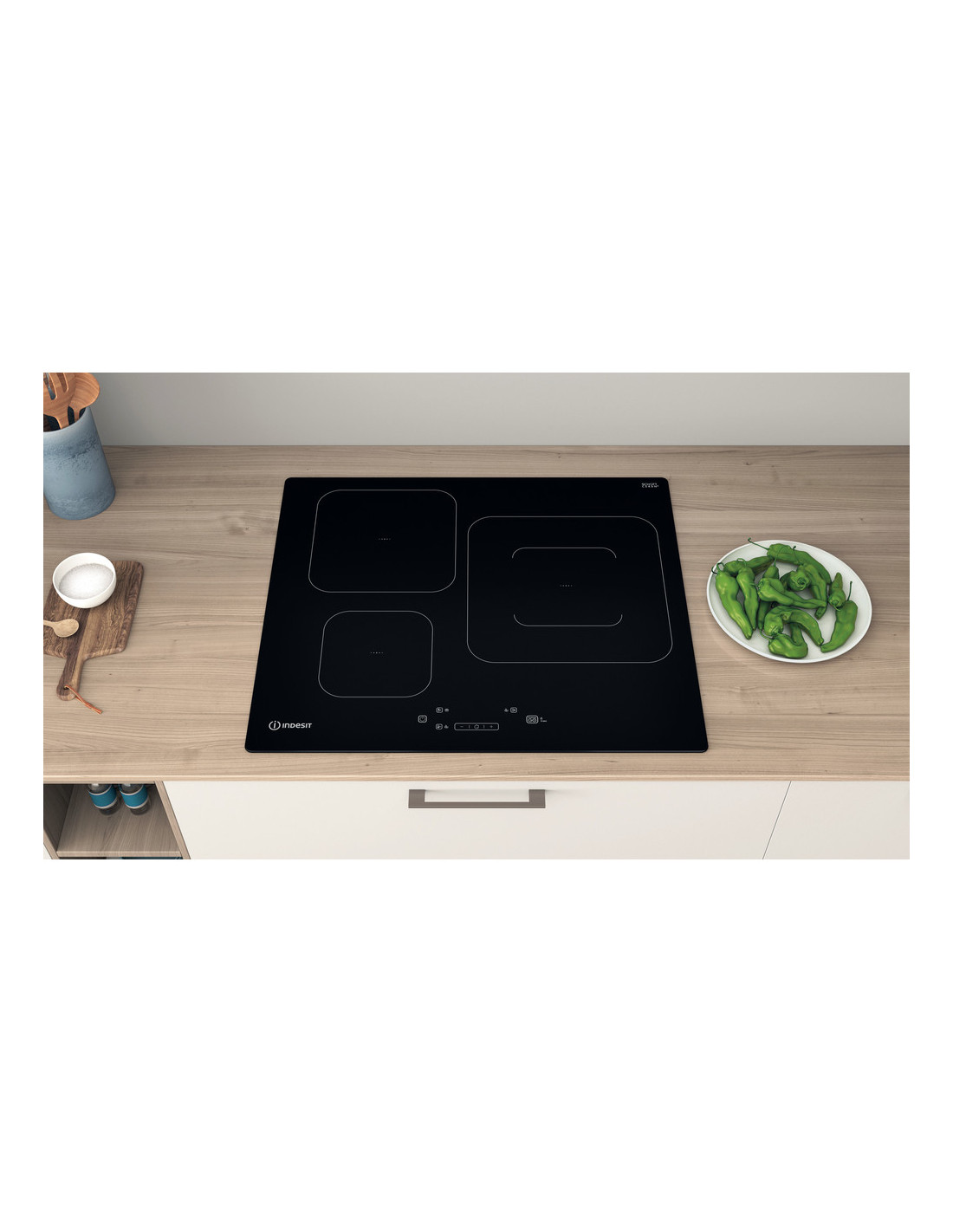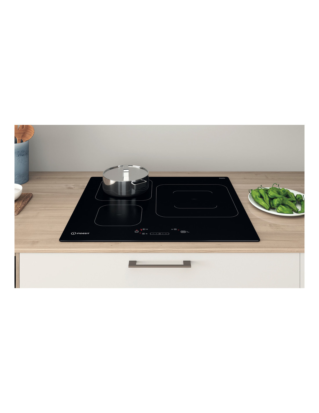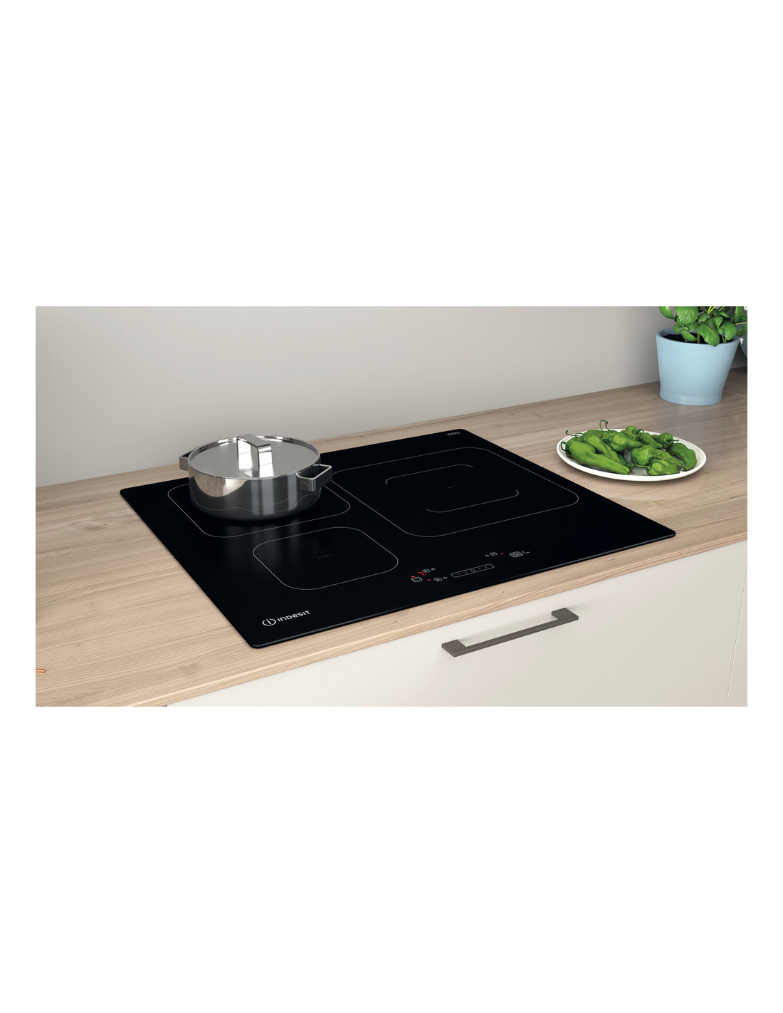 Características de esta encimera de vitrocerámica de inducción Indesit: suministro de energía eléctrica. 3 anillos de inducción.