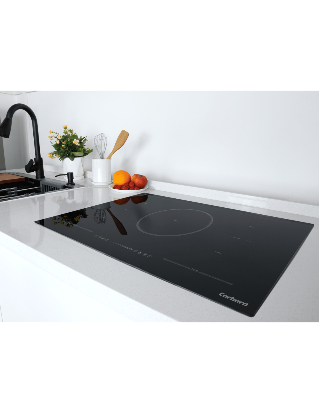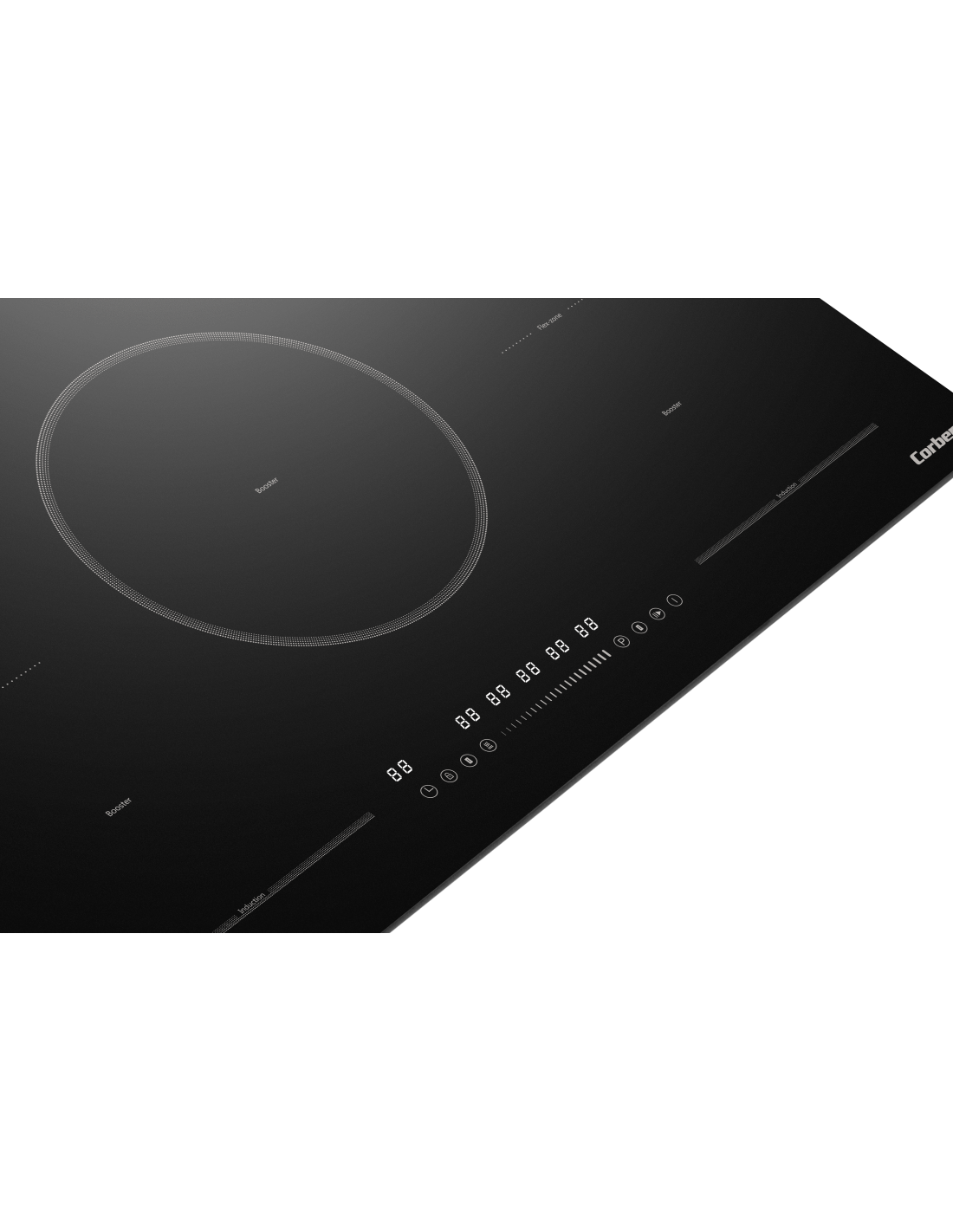 Vitroceramica induccion indep. Corbero CCIG5F950FZ, 90cm, 5 Zonas, Potencia 7360 W, 2 Flexi Zona, Control Slider Touch Control, LED Blanco, Teclado LED oculta, 5 Boosters, Zona Grande 28 Cms, Temporizador 99 Minutos, Botón Pausa, Botón Mantenimiento del Calor, Desconexión Automática de Seguridad, Bloqueo de Seguridad Para Niños, Instalación Fácil