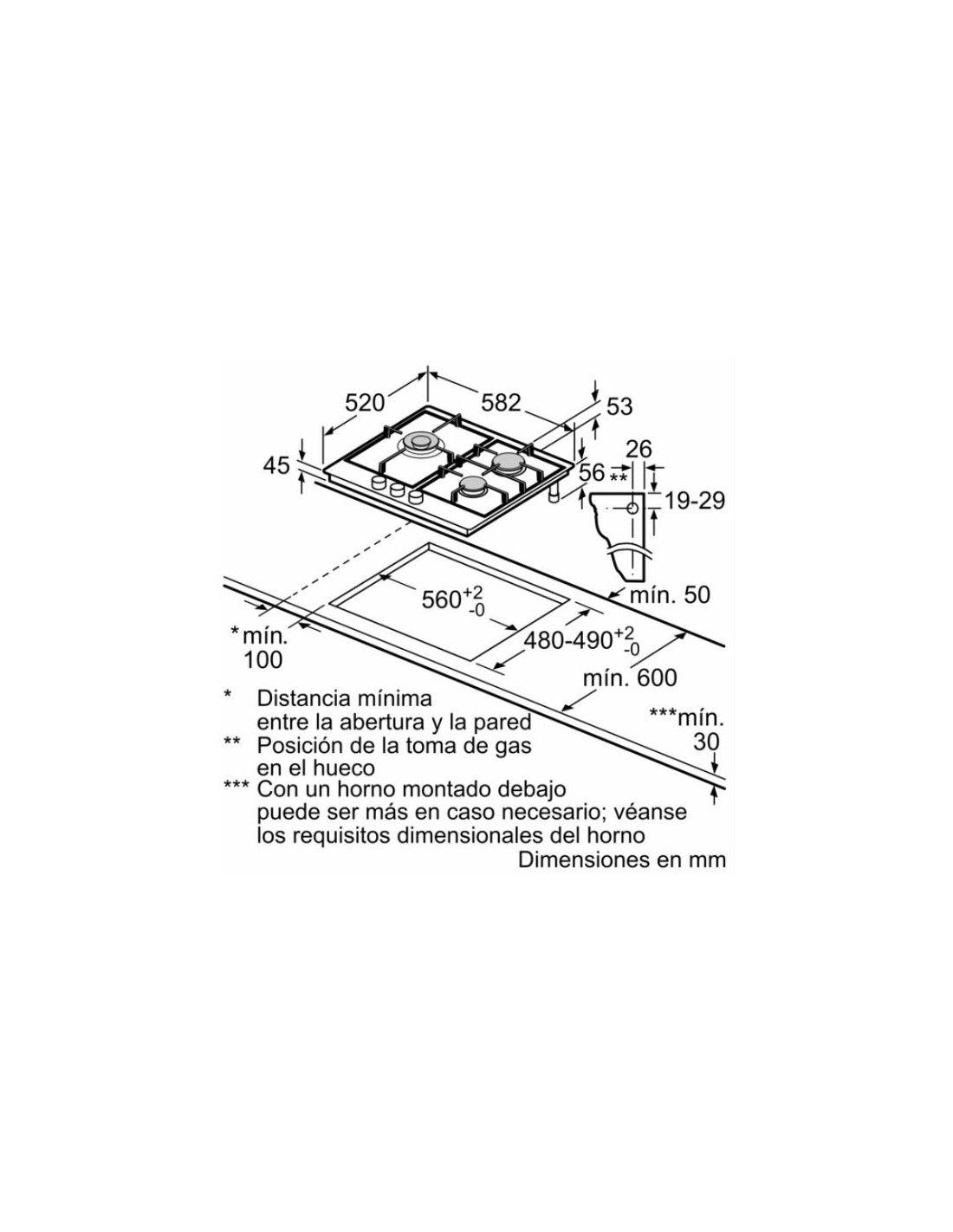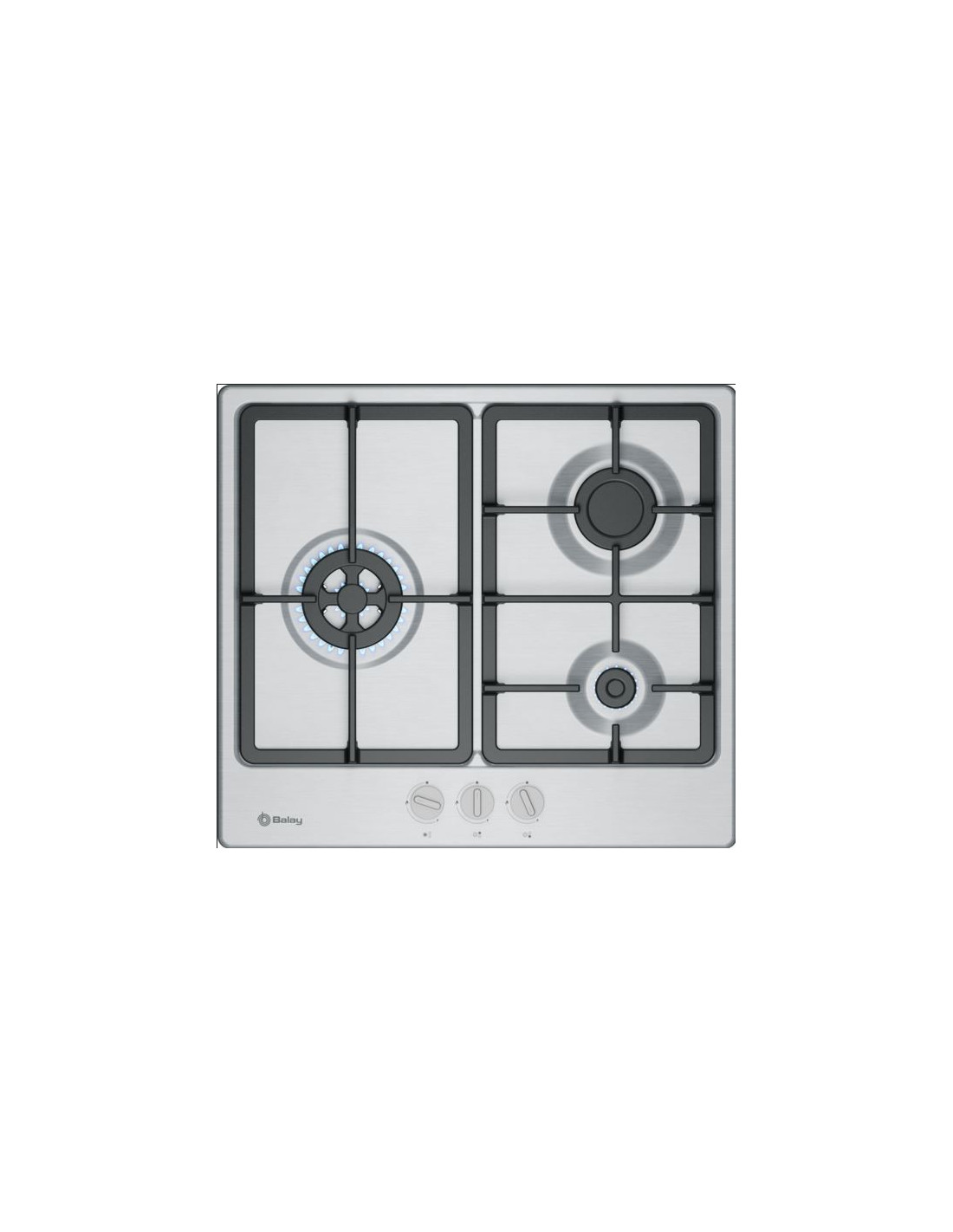Encimera gas Balay 3ETX563CB, Encimera, Gas, Encastrable, 60 cm., 3 quemadores, Acero, Wok de 3,3 kW., Gas Stop, parrillas hierro fundido aptas lavavajillas, autoencendido.
