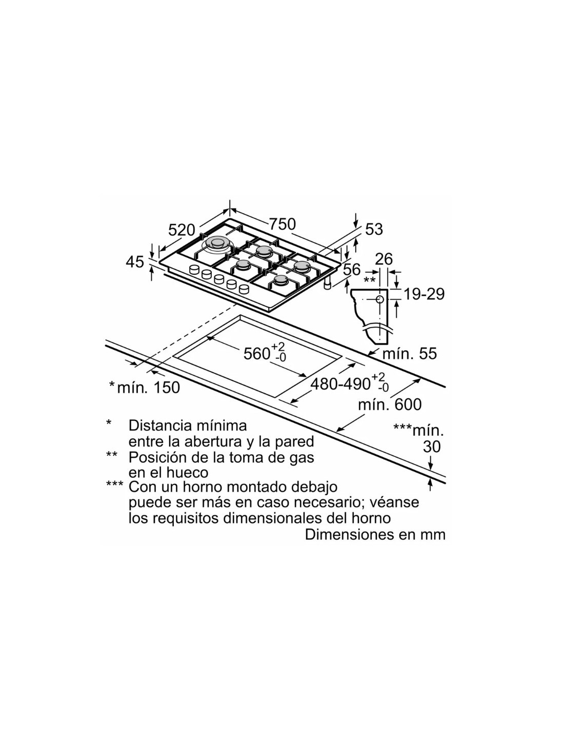 Bosch Serie 6 PCS7A5I90. Color del producto: Acero inoxidable, Tipo de instalación: Integrado, Anchura de los quemadores: 75 cm. Tipo de control: Giratorio, Control de posición: Frente, Tipo de encendido electrónico: Encendido con una mano. Carga conectada (gas): 12500 W, Voltaje de entrada AC: 220-240 V, Frecuencia de entrada AC: 50/60 Hz. Ancho: 750 mm, Profundidad: 520 mm, Altura: 51,5 mm. Ancho del paquete: 793 mm, Profundidad del paquete: 597 mm, Altura del paquete: 145 mm