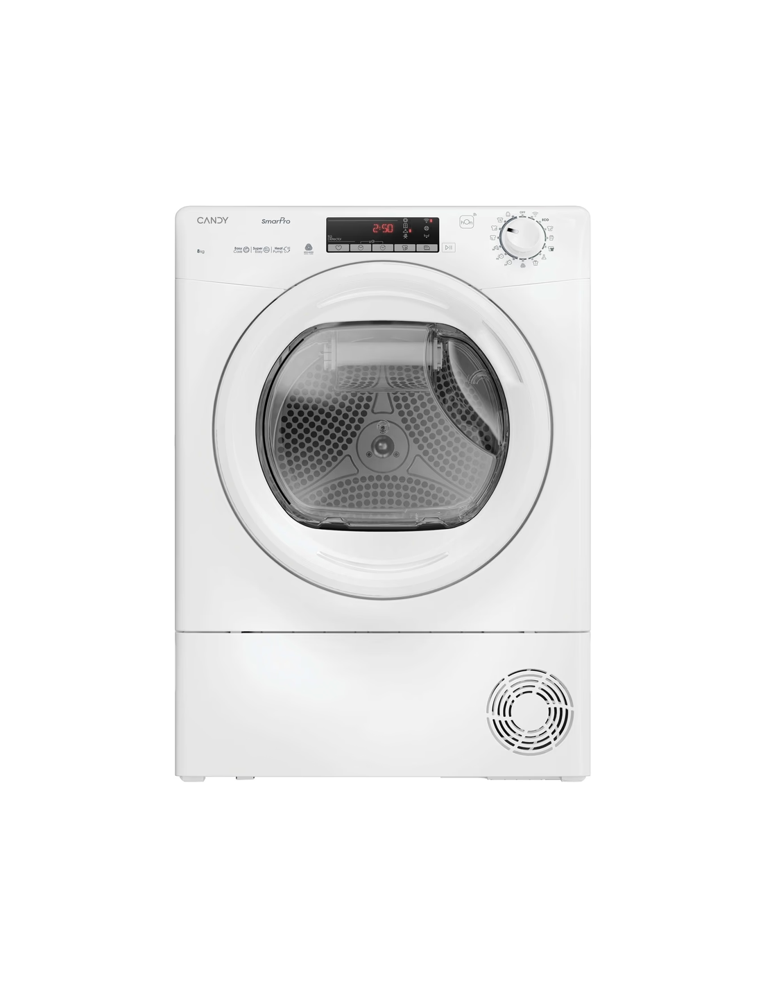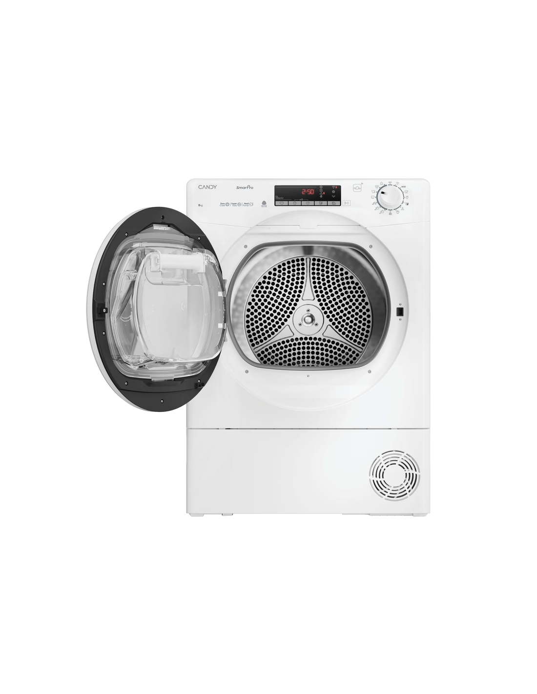 Secadora frontal Candy CROEH8N2TES, 8Kg, Clasificación energética "D/Condensación "B, 66dB muy silenciosa, Bomba de calor, Motor Inverter, Conexión Wifi mediante App hOn