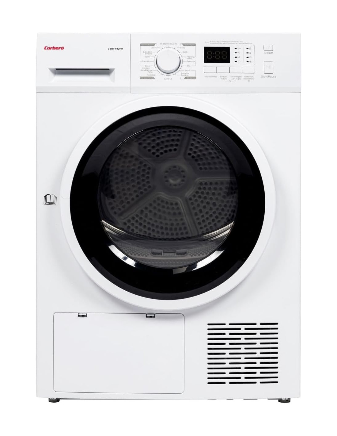 Secadora Carga Frontal Corbero CSBCM820W, 8kg, Bomba de Calor, DisplayLED, Color Blanco, 15 Programas, Programa Inicio Diferido, Función Inicio/Pausa, Antiarrugas y Intensidad,LuzLED, 65dB, Etiqueta energética "E