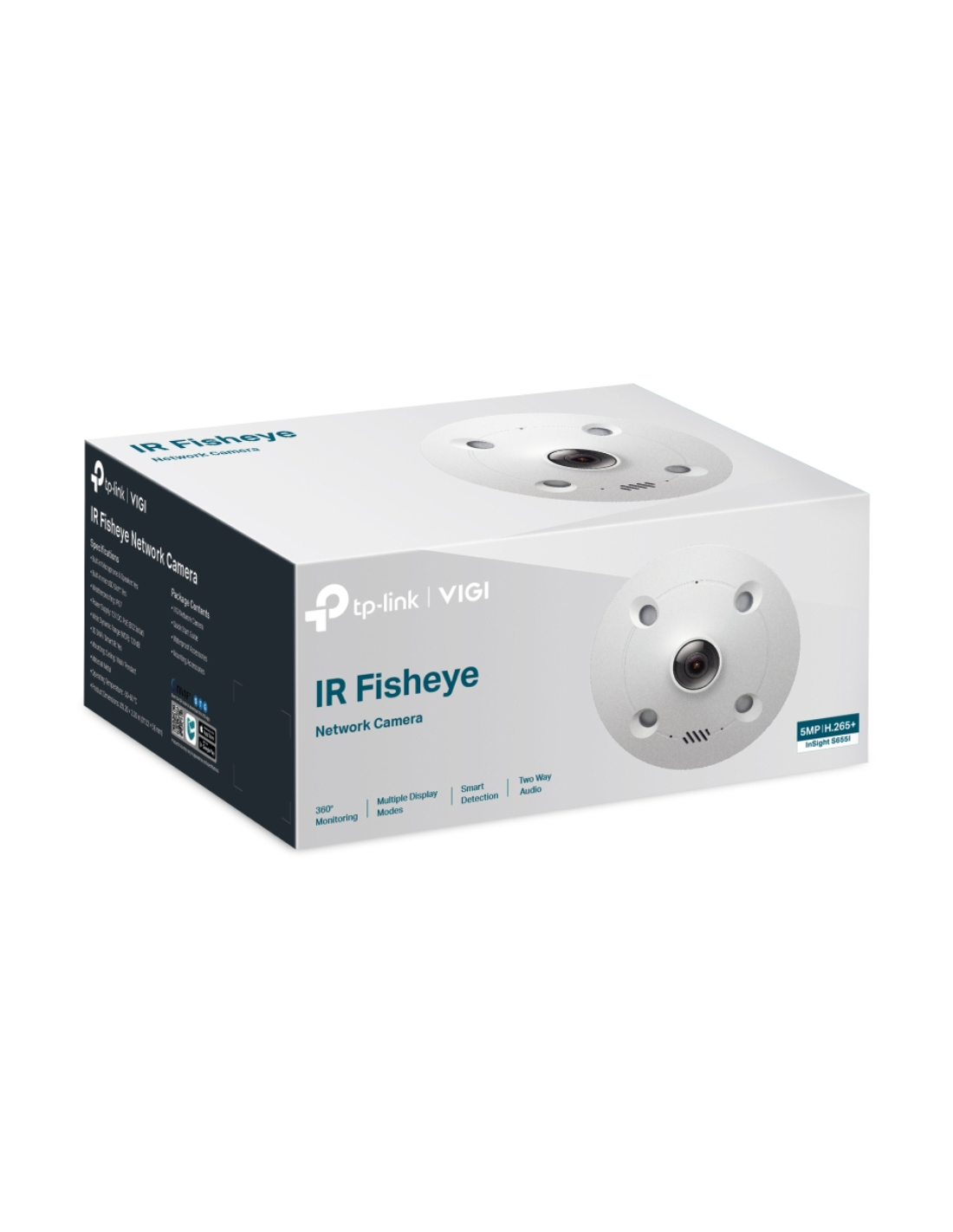 TP-Link InSight S655I. Tipo: Cámara de seguridad IP, Colocación soportada: Interior, Tecnología de conectividad: Alámbrico. Tipo de montaje: Techo/pared, Color del producto: Blanco, Material de la carcasa: Metal. Ángulo de visión de la lente, horizontal: 180°, Ángulo de visión de la lente, vertical: 180°, Ángulo de visión de la lente, diagonal: 180°. Tipo de sensor: CMOS, Tamaño del sensor óptico: 25,4 / 2,7 mm (1 / 2.7"). Tipo de sensor (cámara panorámica): CMOS, Relación señal/ruido (SNR) (cámara panorámica): 52 dB