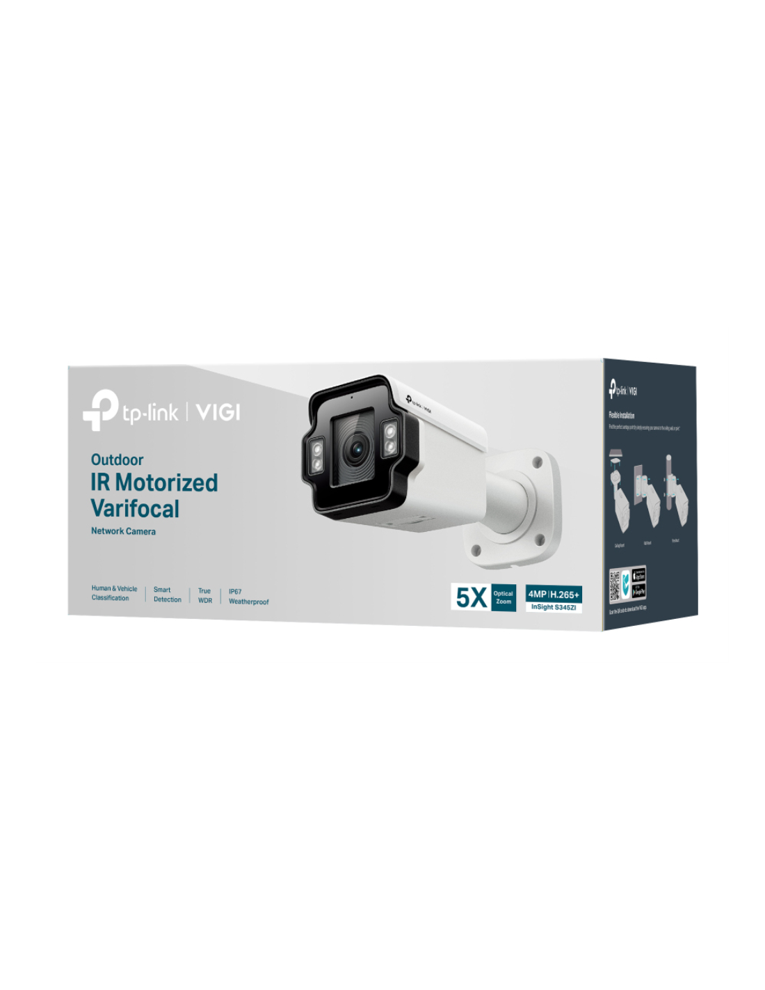 TP-Link VIGI InSight S345ZI. Tipo: Cámara de seguridad IP, Colocación soportada: Exterior, Tecnología de conectividad: Alámbrico. Tipo de montaje: Pared, Color del producto: Blanco, Factor de forma: Bala (forma). Ángulo de rotación: 360°, Ángulo de visión de la lente, horizontal: 29.6–102, Ángulo de visión de la lente, vertical: 16.8–53.8. Tipo de sensor: CMOS, Tamaño del sensor óptico: 25,4 / 2,9 mm (1 / 2.9"). Zoom óptico: 5x, Intervalo de longitud focal: 2.7 - 13.5 mm, Enfoque: Motorizado
