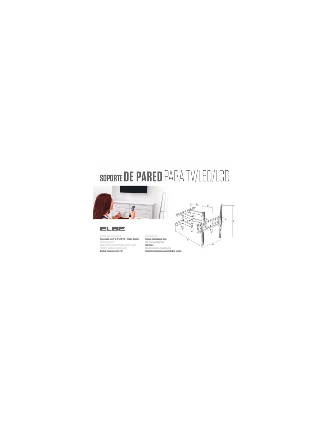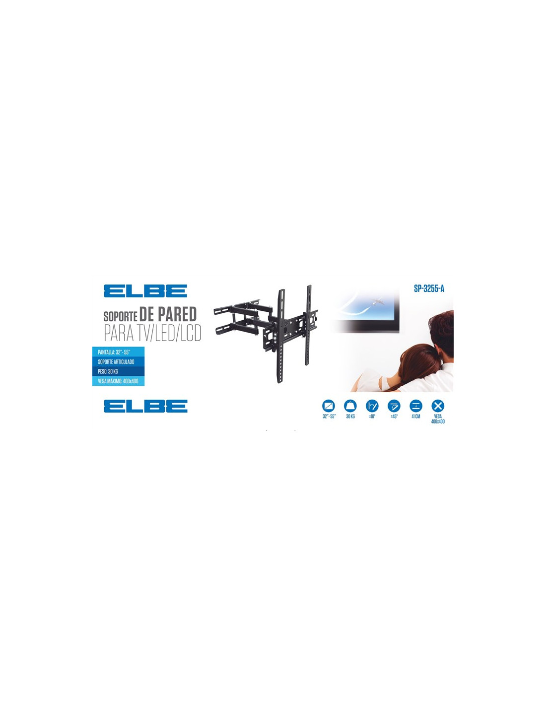 Soporte TV pared ELBE SP3255A, - Soporte de pared universal para TV, Recomendado para TV de 32'? a 55?, VESA: 100x100, 200x100, 200x200, 200x300, 300x300, 200x400, 400x300, 400x400, Capacidad máx.: 30 Kg, Color negro, Ángulo de inclinación vertical:±10°, Ángulo de giro horizontal: ±45°, Distancia a pared: 41 cm, Manual de instalación y tornillos incluidos