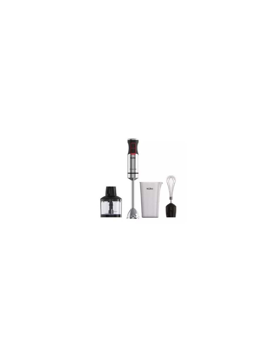 Batidora varilla Solac BA5616 Pro Chef 1200 1200 W. Regulador de velocidades progresivo Función Turbo 4 cuchillas de alta resistencia de acero inoxidable Pica hielo Sistema anti salpicaduras Diseño ergonómico de la empuñadura Varilla de acero inoxidable Desmontable, para una fácil limpieza Cierre bayoneta de la varilla Fácil montaje y desmontaje de la varilla Varilla y accesorios aptos para lavavajillas