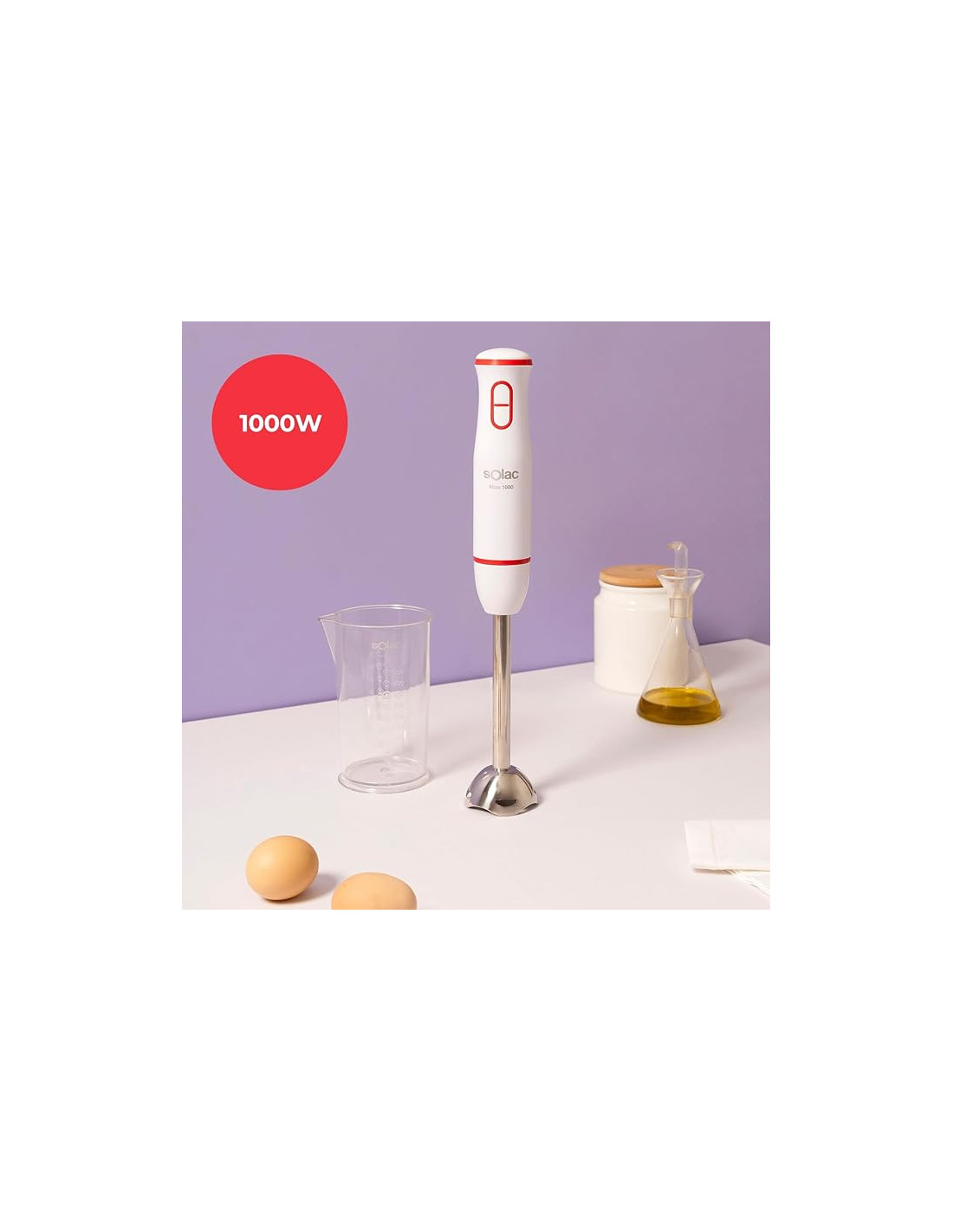Batidora varilla Solac BA5625 BATIDORA BRAZO MIXO 1000 1000w Función TURBO para conseguir la máxima potencia Cuchillas de acero inoxidable de alto rendimiento Fácil montaje de la varilla Varilla en acero inoxidable de alta resistencia Incluye vaso medidor Batidora y accesorios libres de BPA