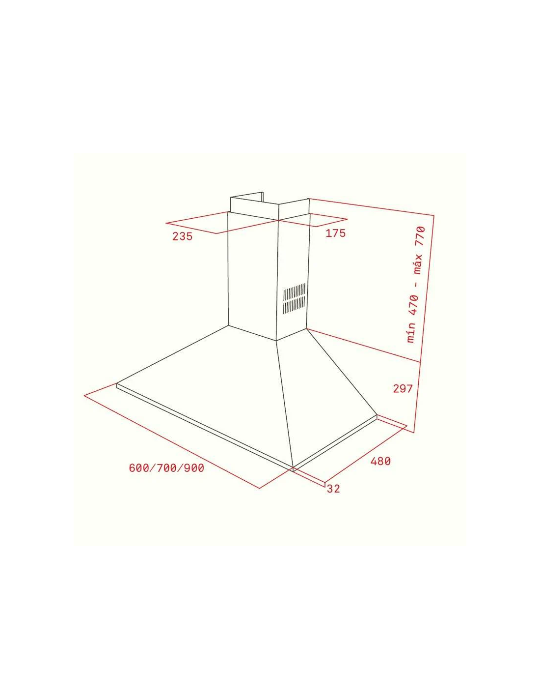 Campana Decorativa Teka DBP70PRO IXL, inox, 70cm, 4 velocidades, pulsantes, 2 halógenas 55db, 613m, Clase energetica "D. Tubo largo