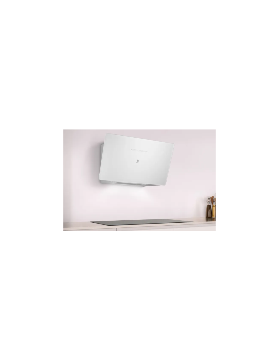 Campana decorativa Balay 3BC599AB, Pared inclinada, A+, Encastrable, 90cm., 1.007 m3/h, HC, Cristal blanco, Motor alta eficiencia, sensor de calidad del aire, control táctil,interior blindado, asp. perimetral e inferior, cierre amortiguado, Favorito, LEDs, conducto negro.