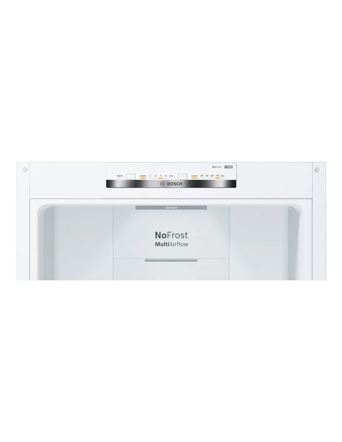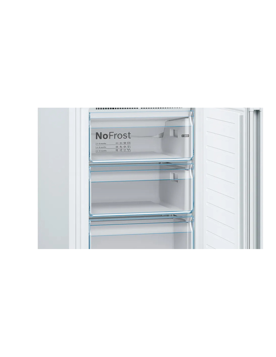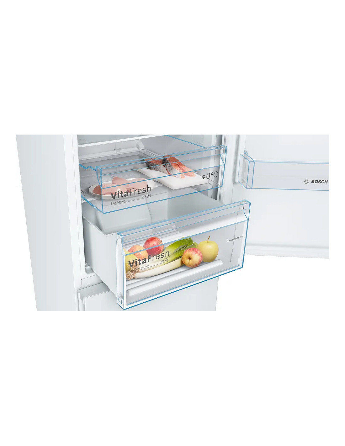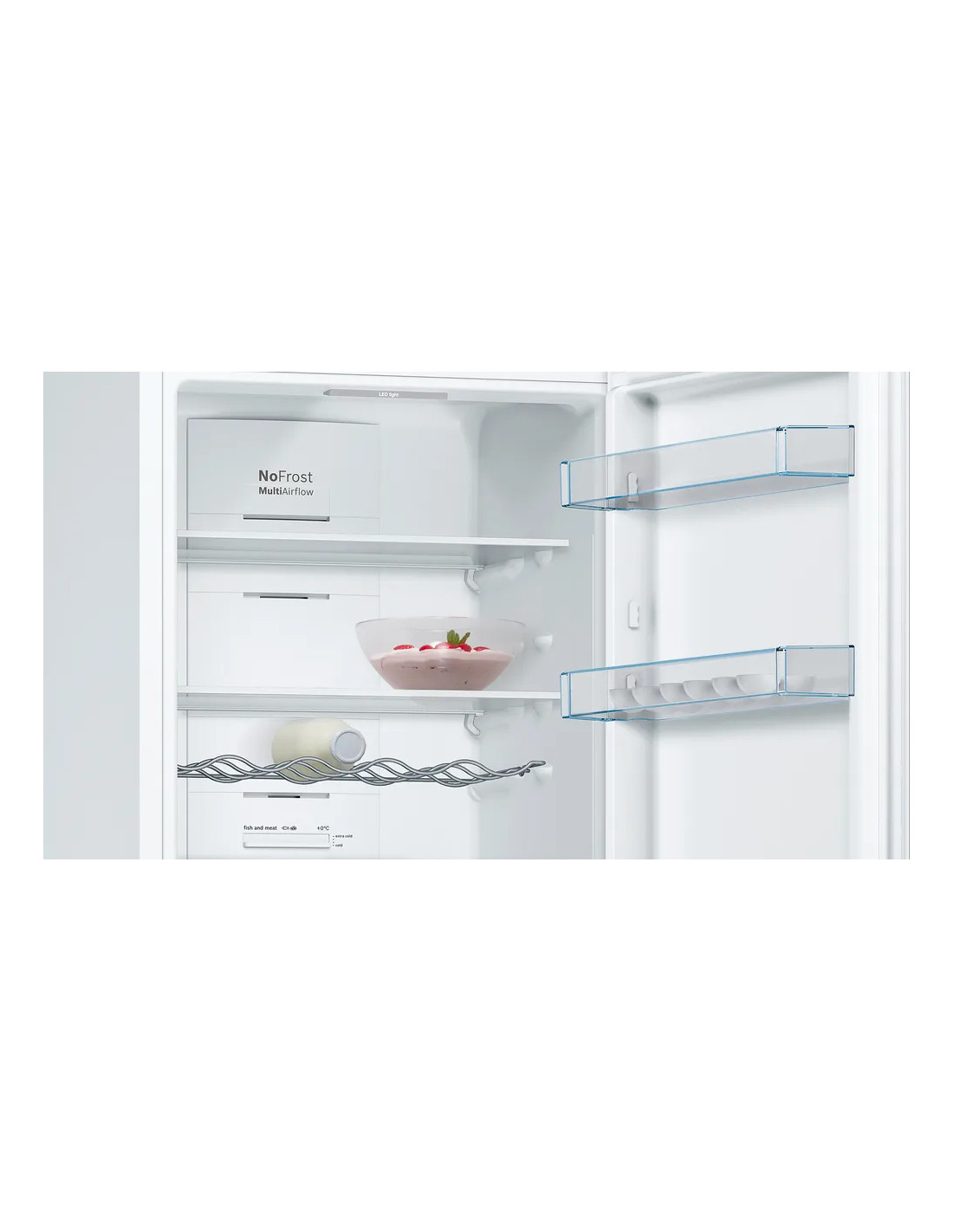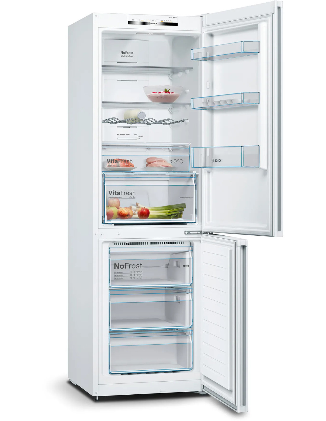 Combi NF Bosch KGN362WED, Frío, Frigorífico combinado NoFrost, Libre instalación, 186x60x66, 324 litros, Blanco, VitaFresh. Tirador vertical integrado, Clasificacion energetica "E