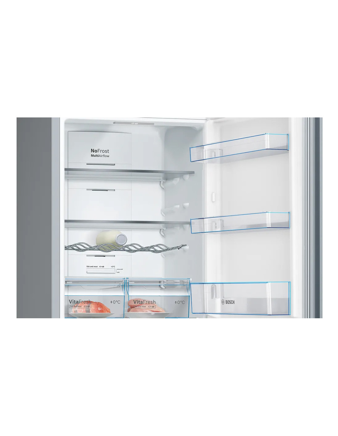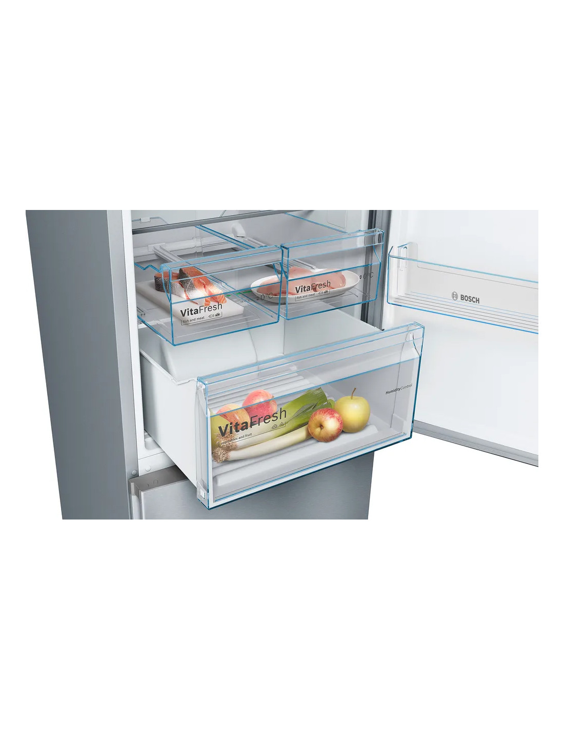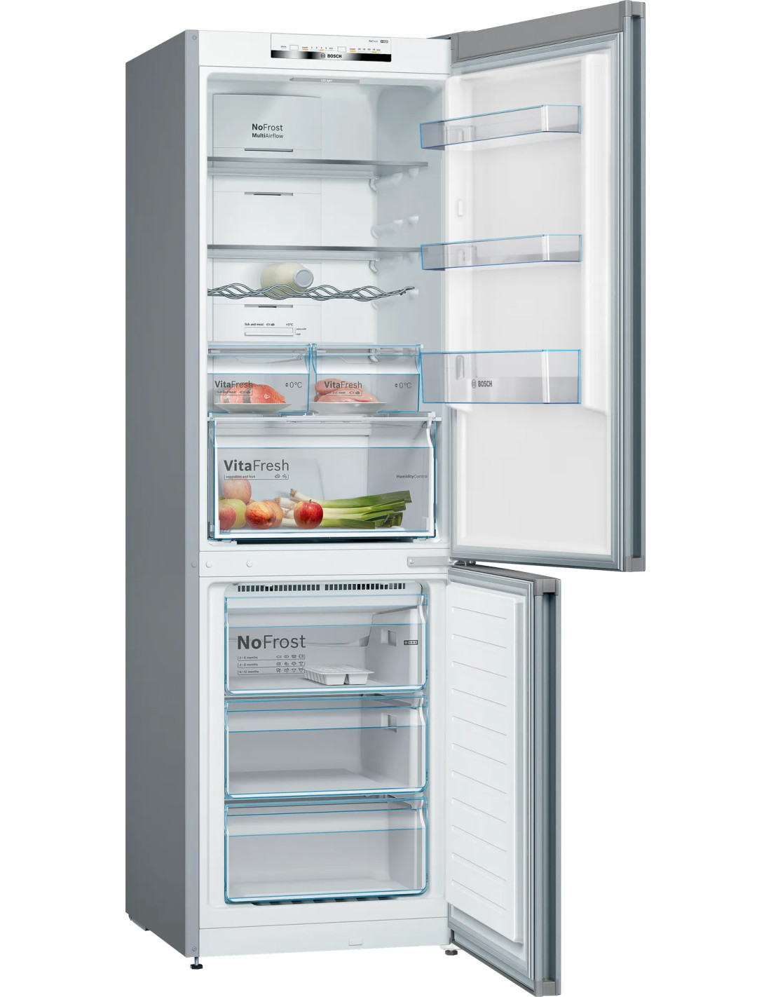 Combi NF Bosch KGN36VIDB, Frigorífico combinado NoFrost, Clase energetica "D, Libre instalación, 186x60x66cm., 326 l., Puertas Acero antihuellas, VitaFresh. Tirador vertical integrado.