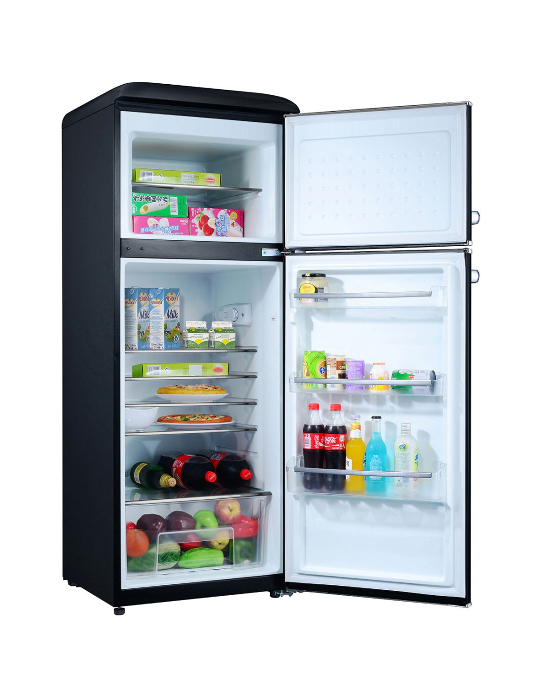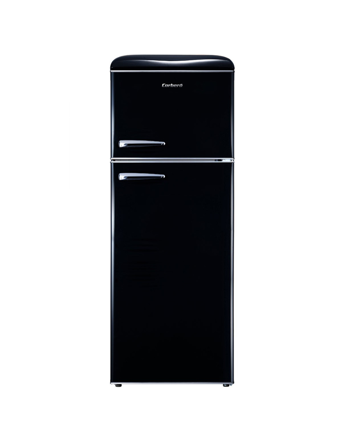 Frigorifico 2puertas Corbero CF2PG148RN, Retro Negro, 148,2x55,2x62,1cm, 215L, Color Negro,LuzLED, Crisper, Descongelación Manual, Estantes de Cristal, Huevera, Cubiteras, 40 Db, Eficiencia Energética "E