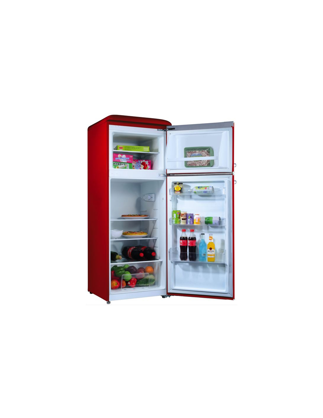 Frigorifico 2puertas Corbero CF2PG148RR2, Retro Rojo, 148,2x55,2x62,1cm, 215L, Color Rojo,LuzLED, Crisper, Descongelación Manual, Estantes de Cristal, Huevera, Cubiteras, 40 Db, Eficiencia Energética "E