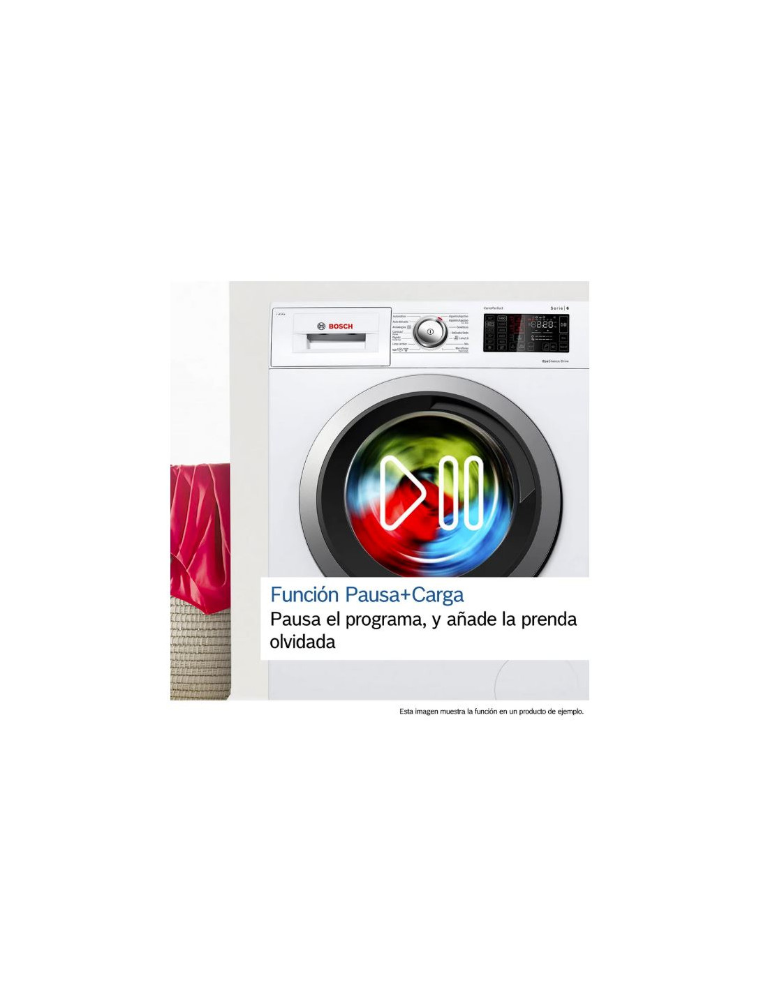 ¿Has encontrado una camiseta o un calcetín olvidados en el cesto de la ropa sucia? ¡No hay problema! Con la función Pausa+Carga, puedes añadir o retirar ropa fácilmente de la lavadora aunque esté en marcha*. Basta con pulsar el botón Pausa+Carga, abrir la puerta, añadir o quitar lo que quieras y seguir con el programa.
