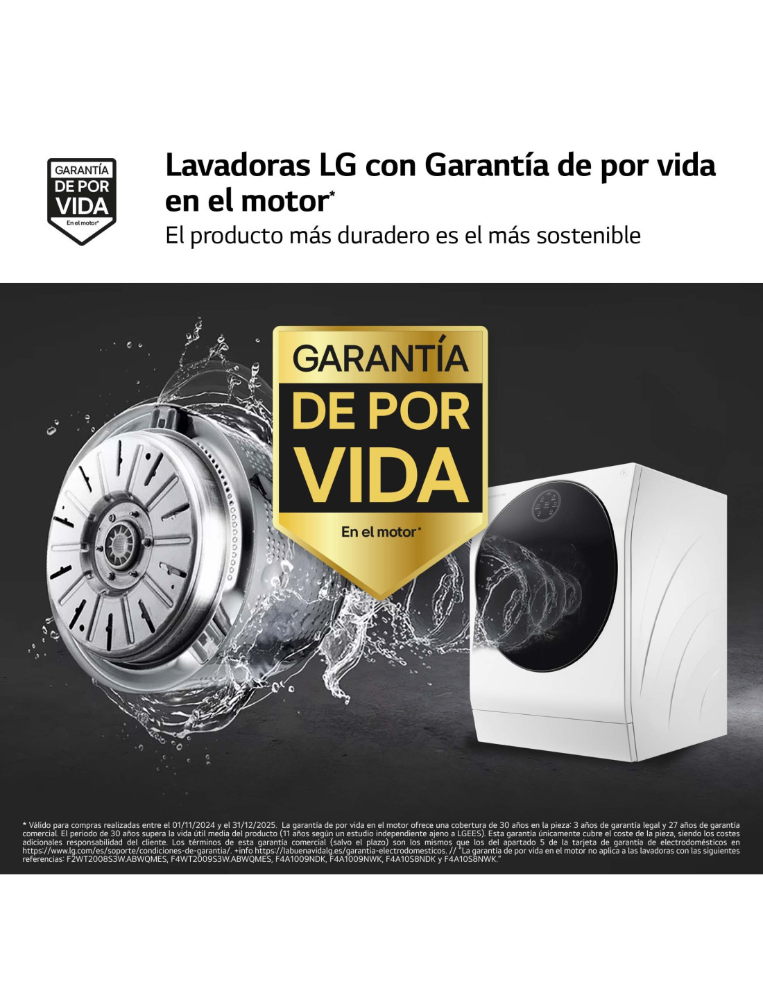 Lavasecadora Lg LSWD100E, Blanca, Clase energetica "A/"A, 12kg lavado, 7kg secado, 1600rpm, Steam+, Blanco, TurboWash 360º, Autodosificación de detergente y suavizante, Secado con Bomba de Calor Inverter, Lavado Rápido TurboWash, Motor Centum System, Display circular