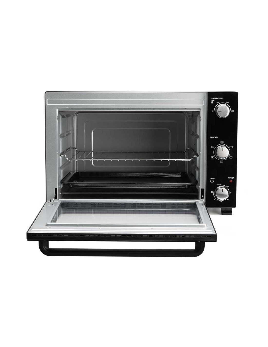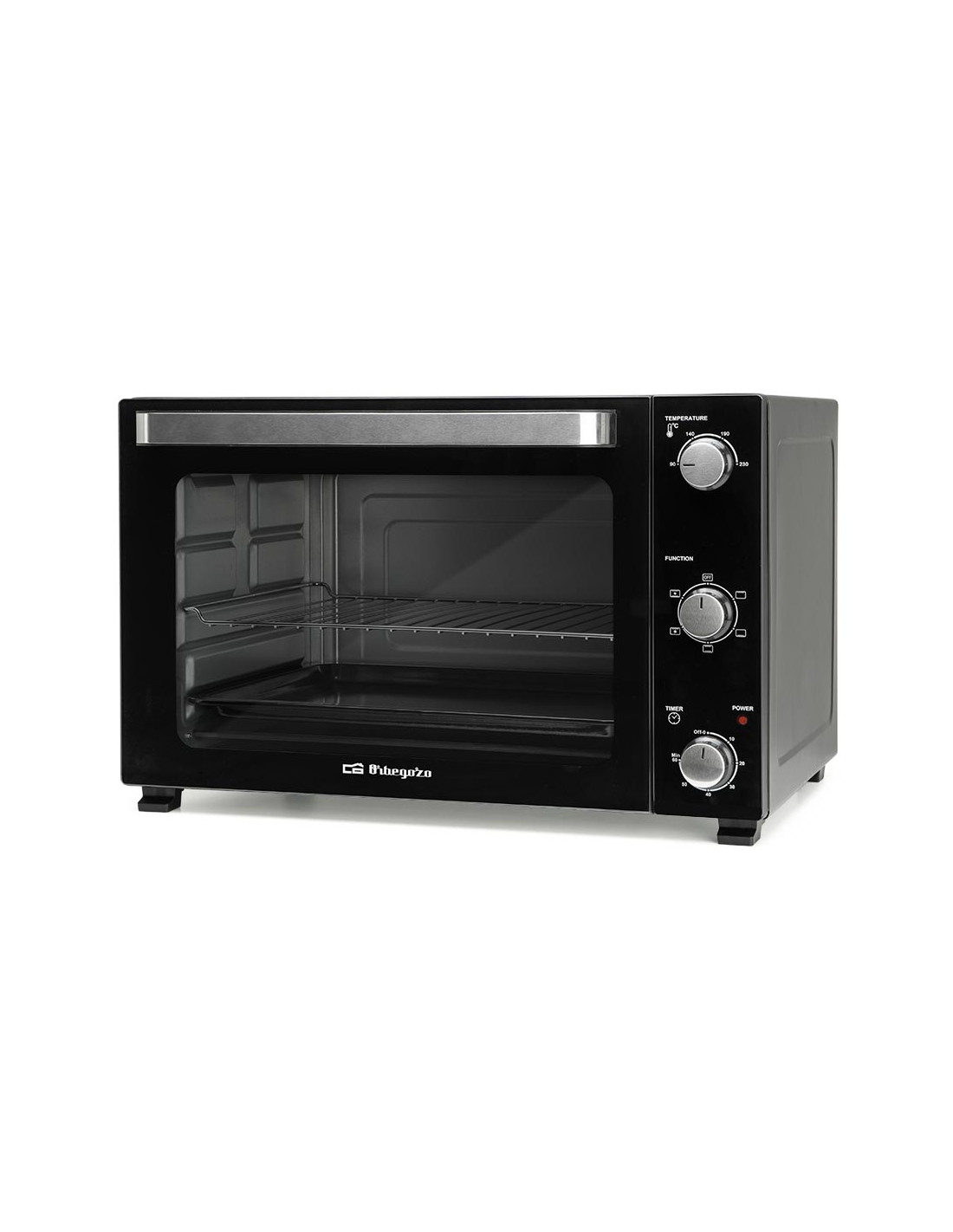 Mini Horno Orbegozo HOT750, 60 litros, 2000W. Función convección. Temperatura regulable de 90 c 230 c. Piloto luminoso de funcionamiento. Luz interior para controlar la cocción. Temporizador de 60 min con señal acústica de parada. Calor superior e inferior, simultáneo o individual. Puerta abatible con doble cristal para mantener el calor. Resistencias de acero inoxidable. Bandeja recogemigas. Accesorios: bandeja, parrilla y mango para bandeja/parrilla. Medidas (ancho-alto-fondo): 60,2 x 38,6 x 47 cm. Conexión 220 - 240v ~ 50/60hz.