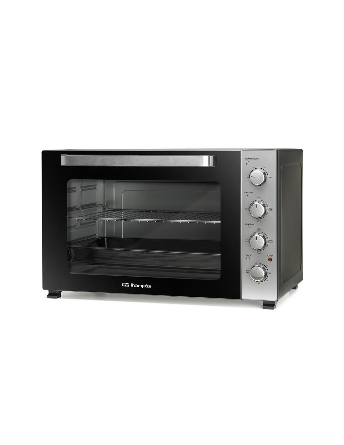 Mini Horno Orbegozo HOT750, 75 litros, 2400W. Función convección. Rustidor: sistema de asado giratorio. Temperatura regulable de 90 Cº 230 Cº. Piloto luminoso de funcionamiento. Luz interior para controlar la cocción. Temporizador de 60 min con señal acústica de parada. Calor superior e inferior, simultáneo o individual. Puerta abatible con doble cristal para mantener el calor. Resistencias de acero inoxidable. Bandeja recogemigas. Accesorios: bandeja, bandeja redonda, parrilla y mango para parrilla. Medidas (ancho-alto-fondo): 68,2 x 42,5 x 43 cm. Conexión 220 – 240V ~ 60/50Hz.