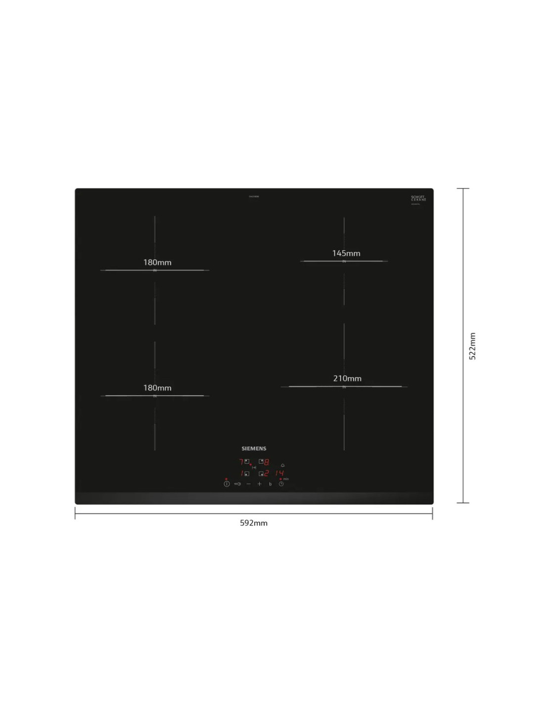 Vitroceramica induccion indep. Siemens EH631BEB6E, Inducción, Encastrable, 60cm., 4 zonas, Negro/ bisel delantero, easyTouch