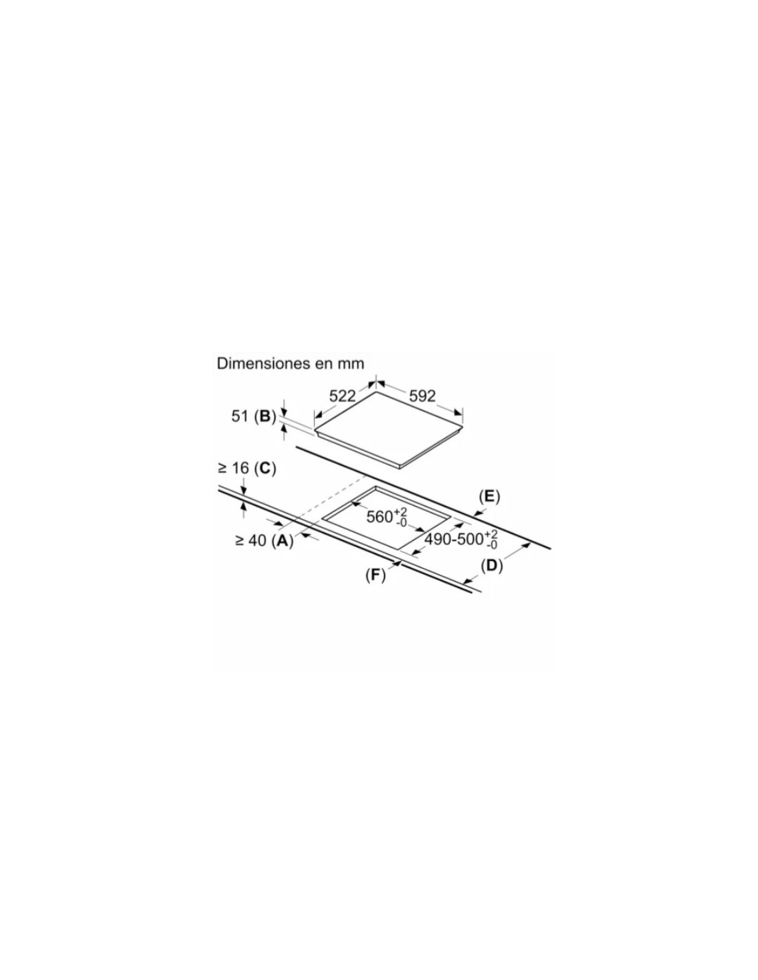 Siemens iQ100 EH631BEB6E. Color del producto: Negro, Tipo de instalación: Integrado, Anchura de los quemadores: 60 cm. Tipo de control: Tocar, Control de posición: Front / Top front, Tipo de temporizador: Digital. Carga conectada (eléctrica): 7400 W, Voltaje de entrada AC: 220-240 V, Frecuencia de entrada AC: 50-60 Hz. Ancho: 592 mm, Profundidad: 522 mm, Altura: 51 mm. Ancho del paquete: 753 mm, Profundidad del paquete: 608 mm, Altura del paquete: 126 mm