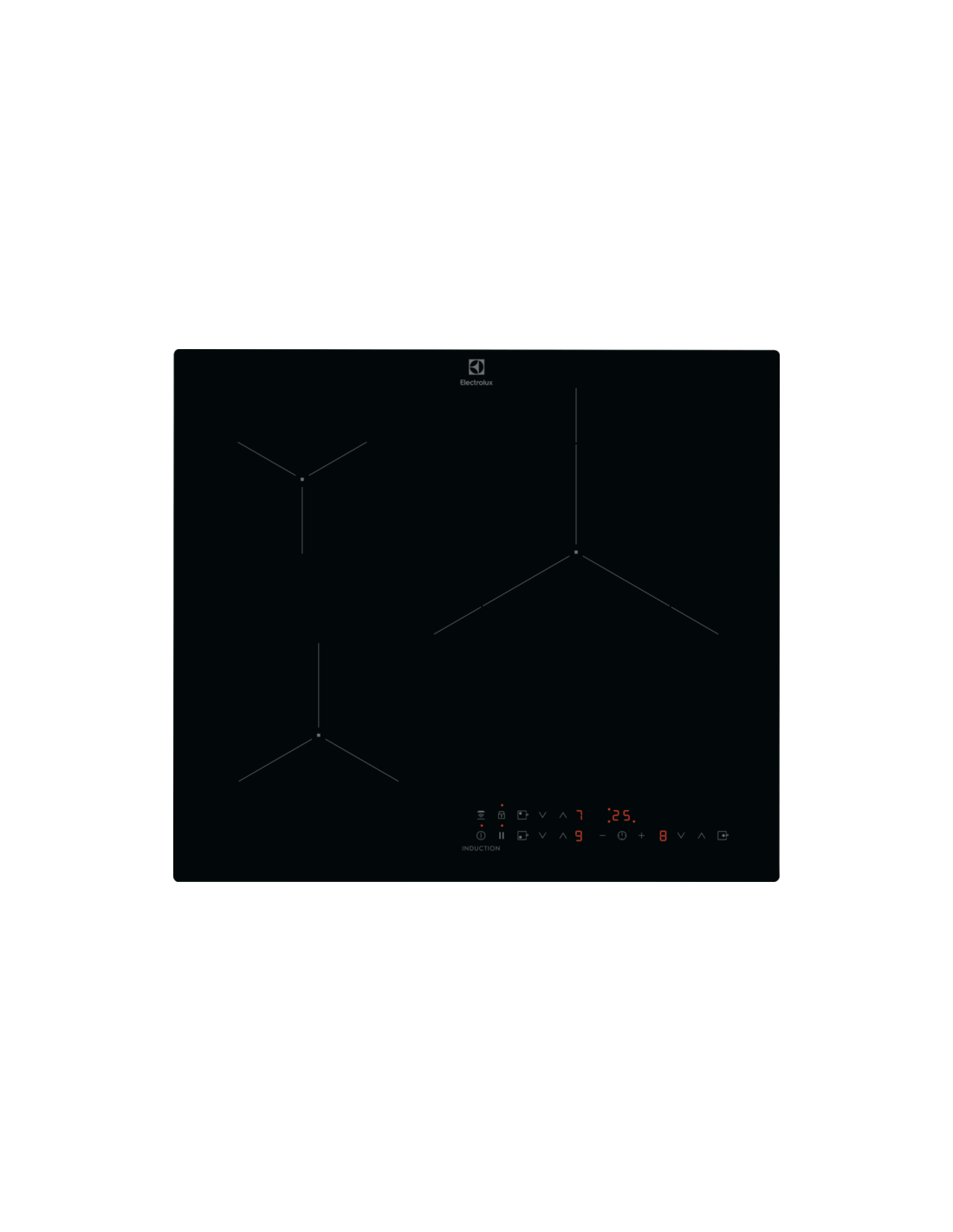 Vitroceramica induccion indep. Electrolux EIT61336CB, Serie 300 Induction, 3 zonas: 32cm, 18cm y 14,5cm, Sin Marco, 60cm, Zona Paella (32cm), Controles (0-9 con 3 zonas PowerBoost) individuales con temporizador individual, Función Pausa, Bloqueo de seguridad, H2H