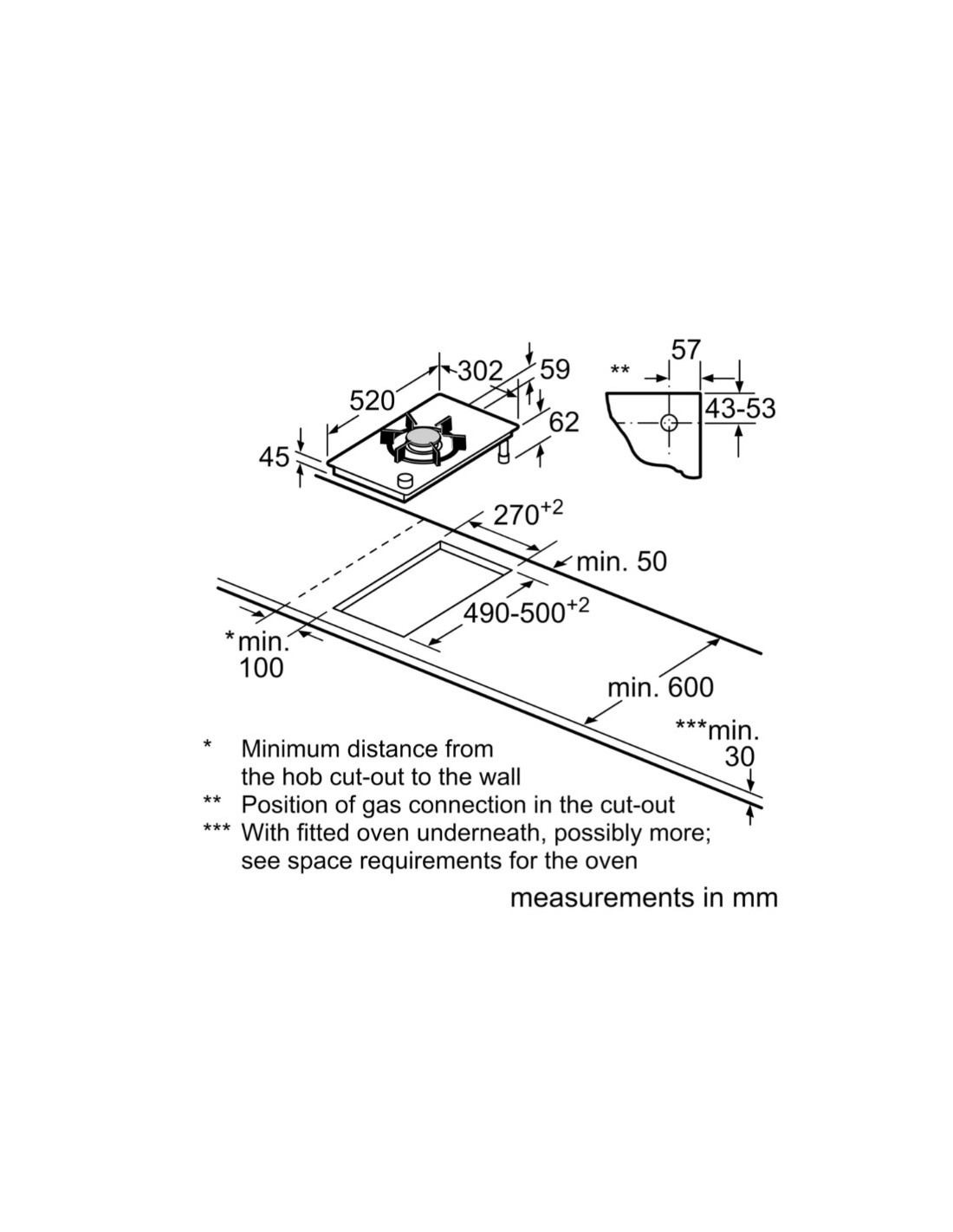Siemens iQ700 ER3A6AI10. Color del producto: Negro, Tipo de instalación: Integrado, Anchura de los quemadores: 30 cm. Tipo de control: Giratorio, Control de posición: Frente, Tipo de encendido electrónico: Encendido con perilla. Carga conectada (gas): 6000 W, Voltaje de entrada AC: 220 - 240 V, Frecuencia de entrada AC: 50/60 Hz. Tecnologías Siemens (cocción): Home Connect. Ancho: 302 mm, Profundidad: 520 mm, Altura: 57 mm