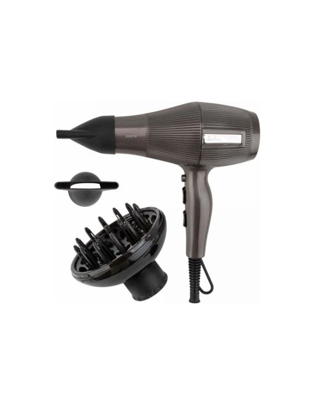 SECADOR IONICO MOTOR AC JATA JBSC1290, Motor AC de alto rendimiento Difusor universal de aire Reducción encrespamiento gracias al generador continuo de iones Limitador térmico de seguridad Mandos independientes integrados 3 posiciones de caudal de aire 0 - 1 - 2 3 niveles de temperatura: 1 - 2 - 3 Pulsador de fase fría instantánea Caudal de aire 17,3 Mts/s Longitud del cable: 2,8 Mts 2 concentradores de aire de distinto tamaño: 6 / 7,5 cm Anilla para colgar Voltaje 230 V Potencia máxima 2200 W