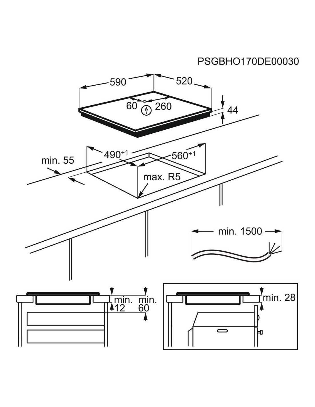 Vitroceramica induccion indep. Electrolux EIF61342, 60cm, Infinite, Control de fritura, 3fuegos, CookAssist, Hob2Hood, Zona 28cm 5,2 Kw, Ctrl. Deslizante, Temporizador, S&Go, Biselada, Easy Fix, Extraplana.